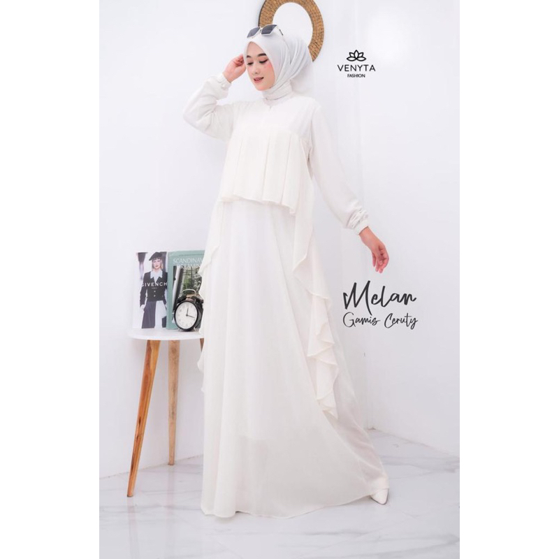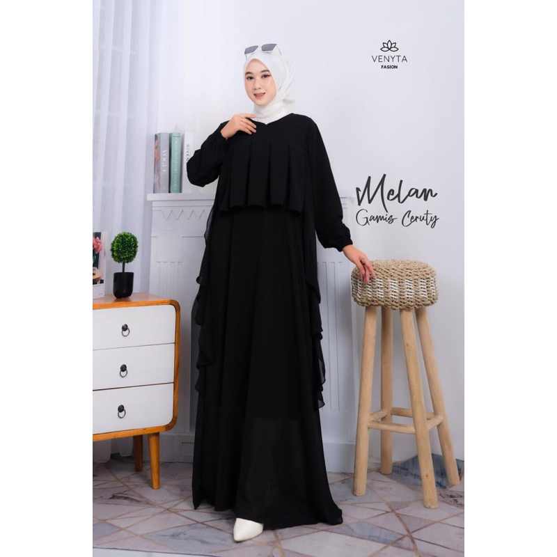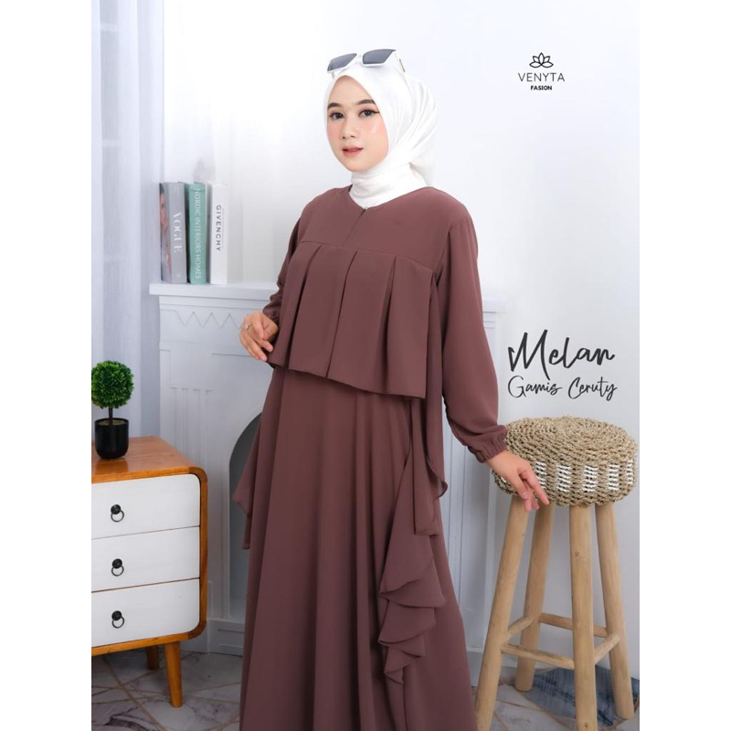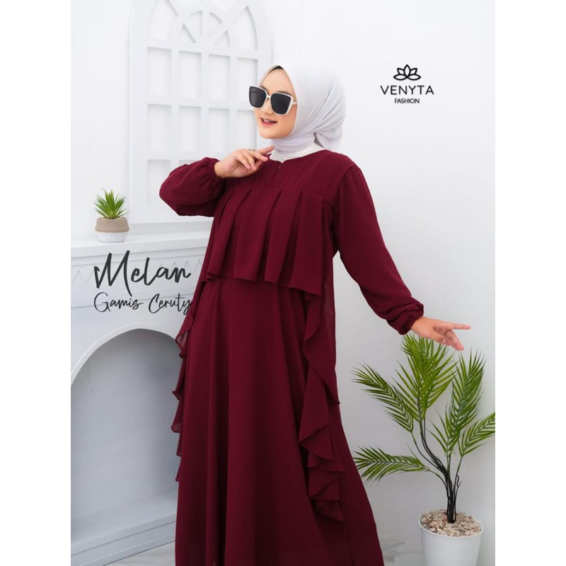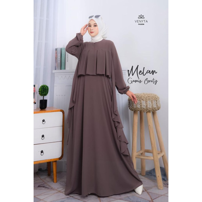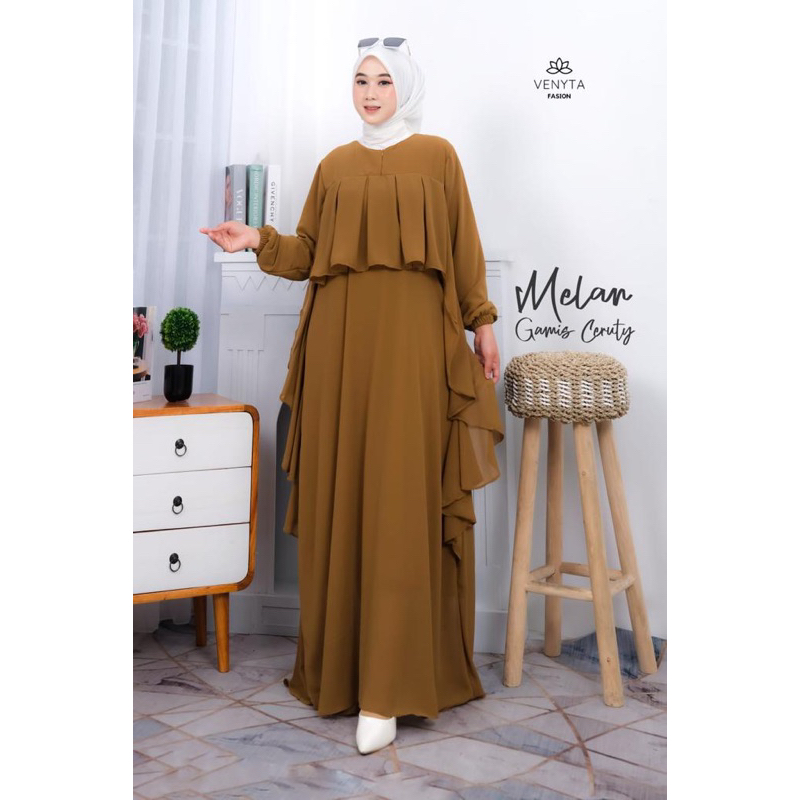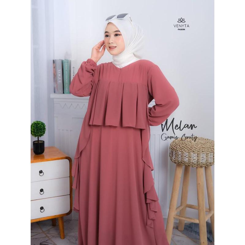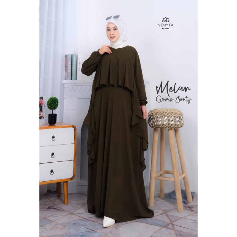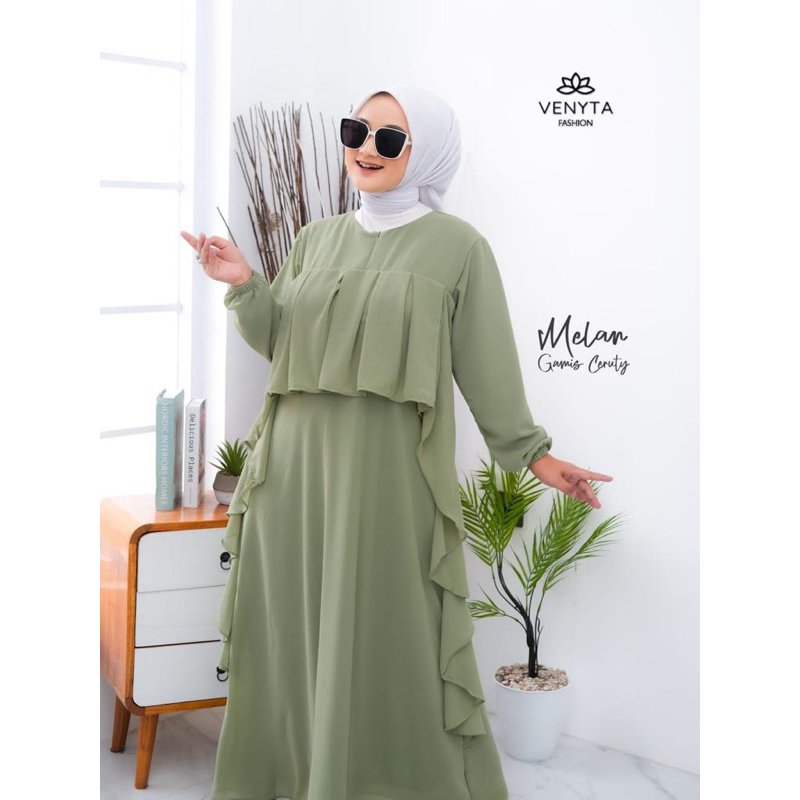 (NURSA MELAN Dress | Fashion Muslim Gamis Wanita Terbaru | Casual Dress | Dress Muslimah Ruffle | Dress Kondangan OOTD | Busui