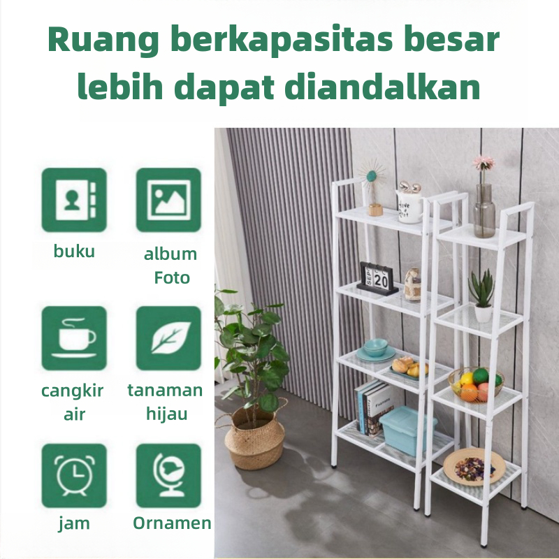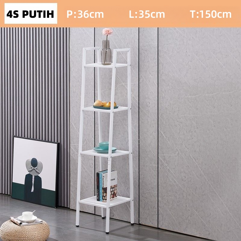 Rak Trapesium 4 Tingkat - Rak dapur Penyimpanan Putih Rak Penyimpanan Logam Rak Penyimpanan Serbaguna Pengatur Barang Gudang