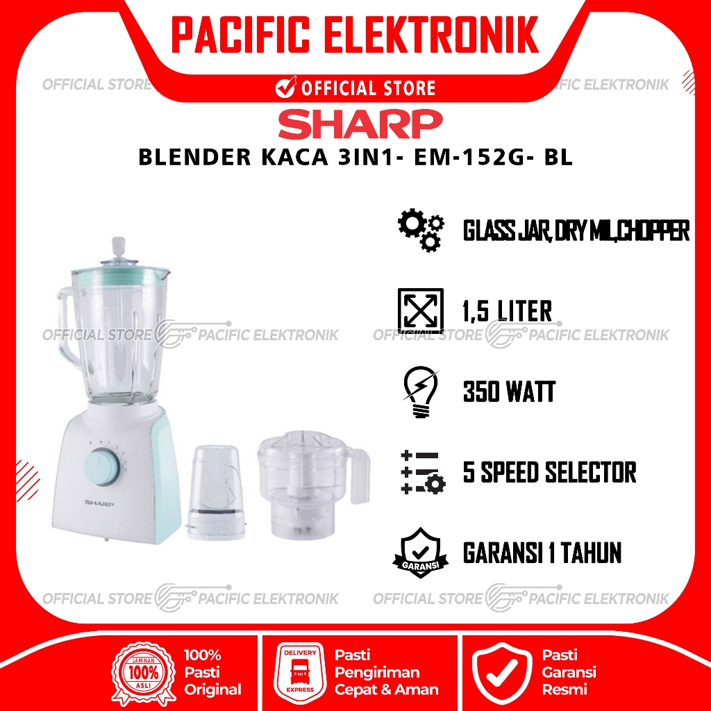 Blender Sharp Fullset 3in1 Kaca EM 152G BL