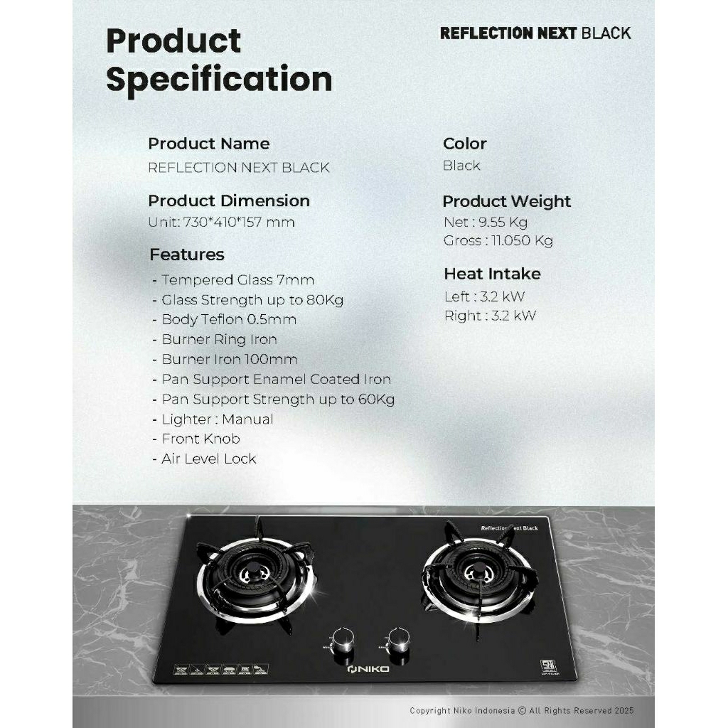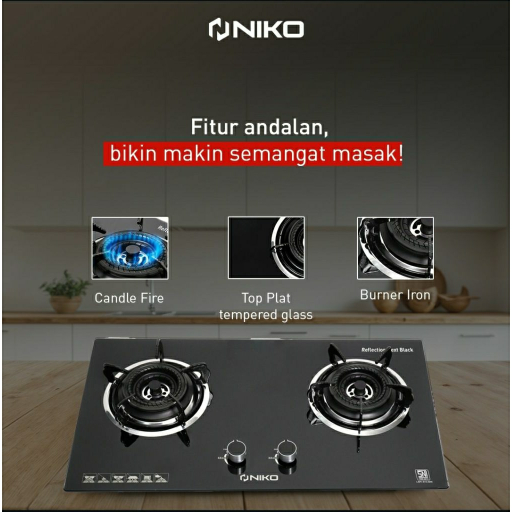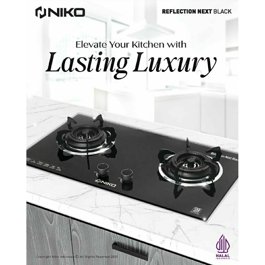Niko Reflection Next Black Kompor Gas Tanam Kaca 2 Tungku Garansi Resmi SNI