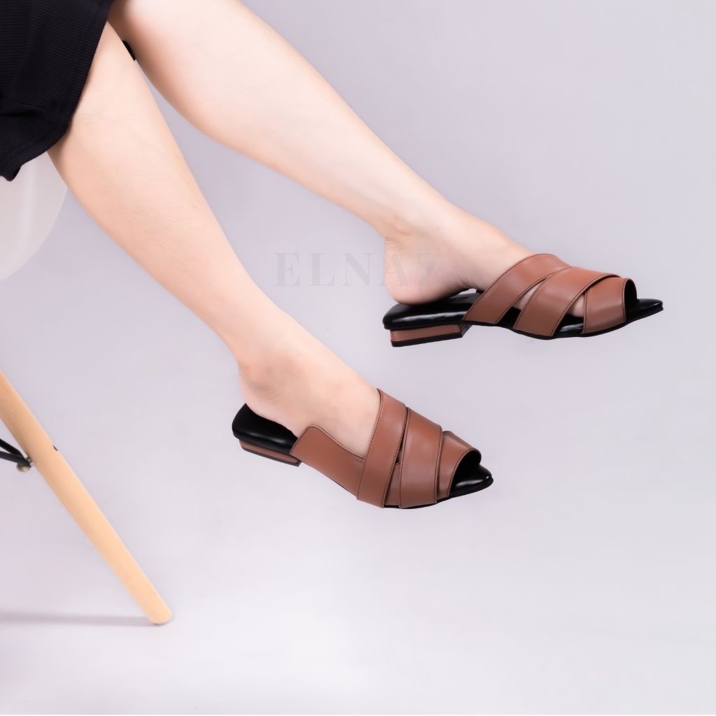 ELNAZ Klara Sandal Mules Wanita Mules Casual Sandal Santai Sepatu Kekinian Warna Gold Premium
