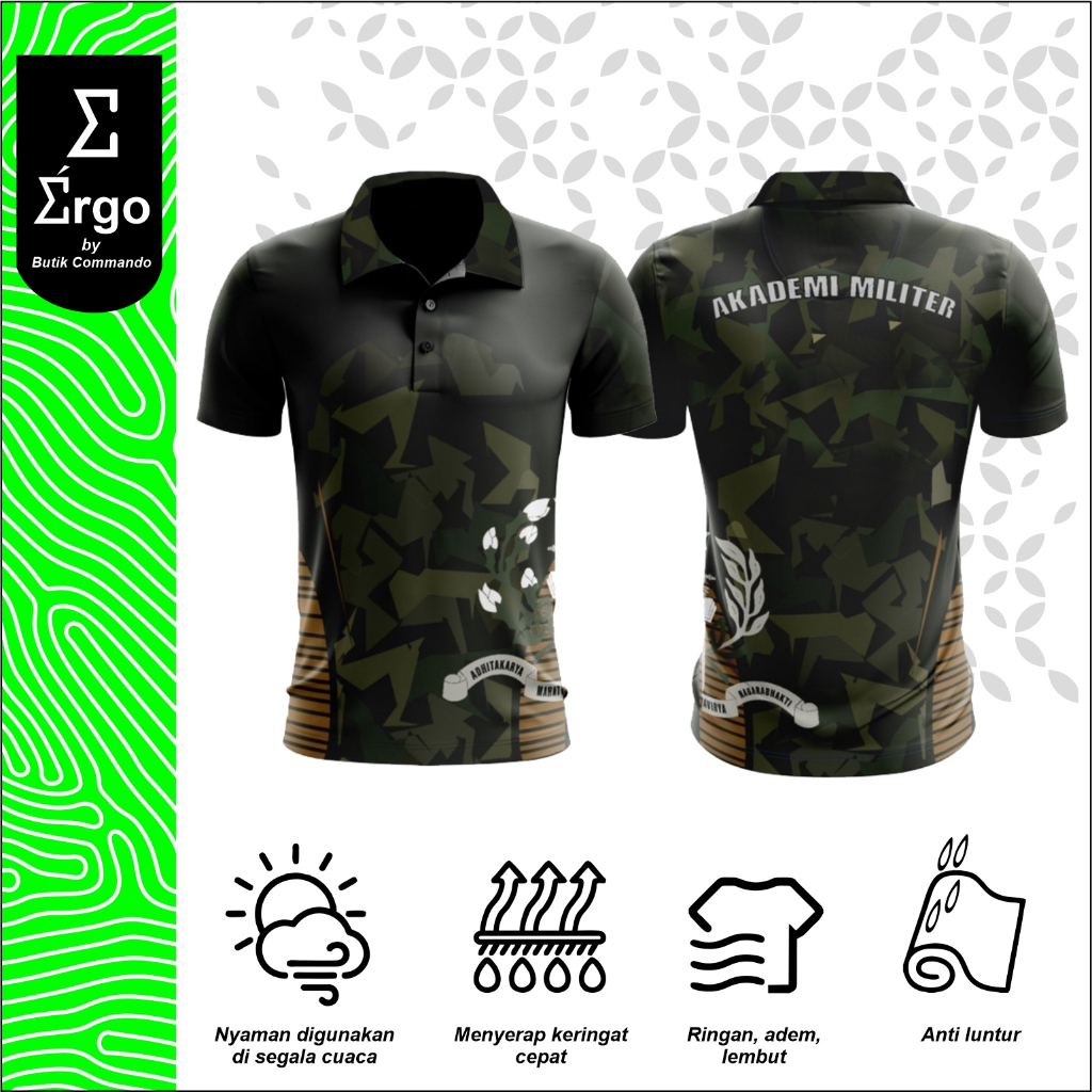 Kaos Jersey Olahraga Full Printing Bahan Dryfit Akademi Militer