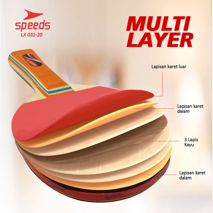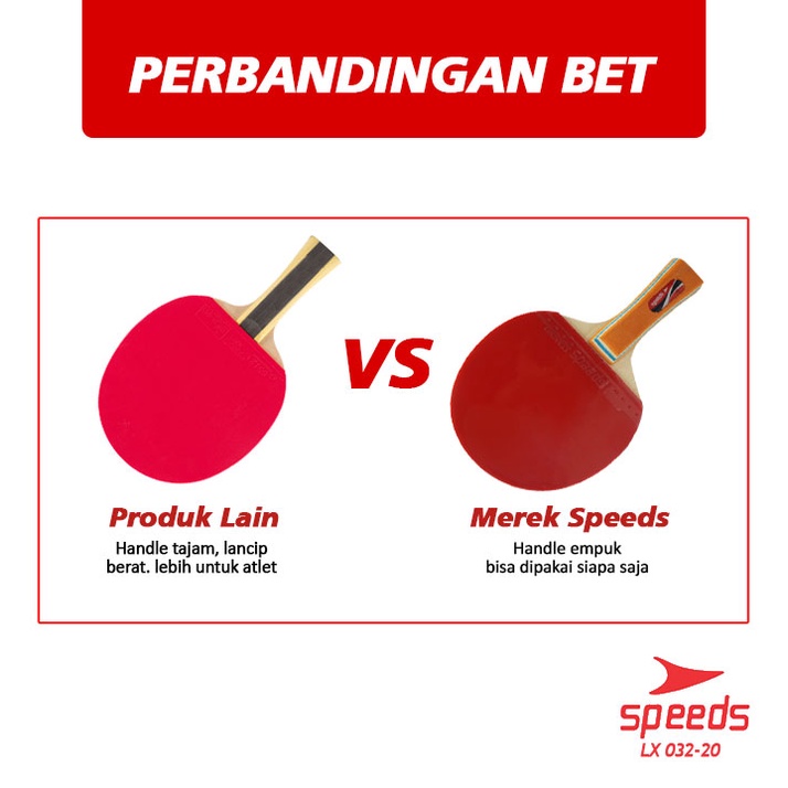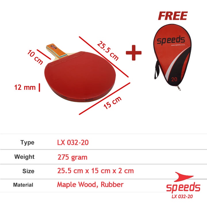 SPEEDS Bet Tenis Meja Pingpong Rubber Karet Pegangan Kayu Premium Nyaman 032-20
