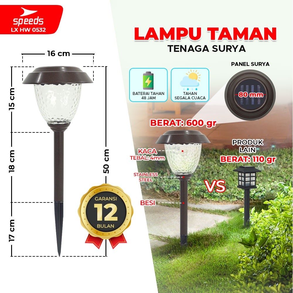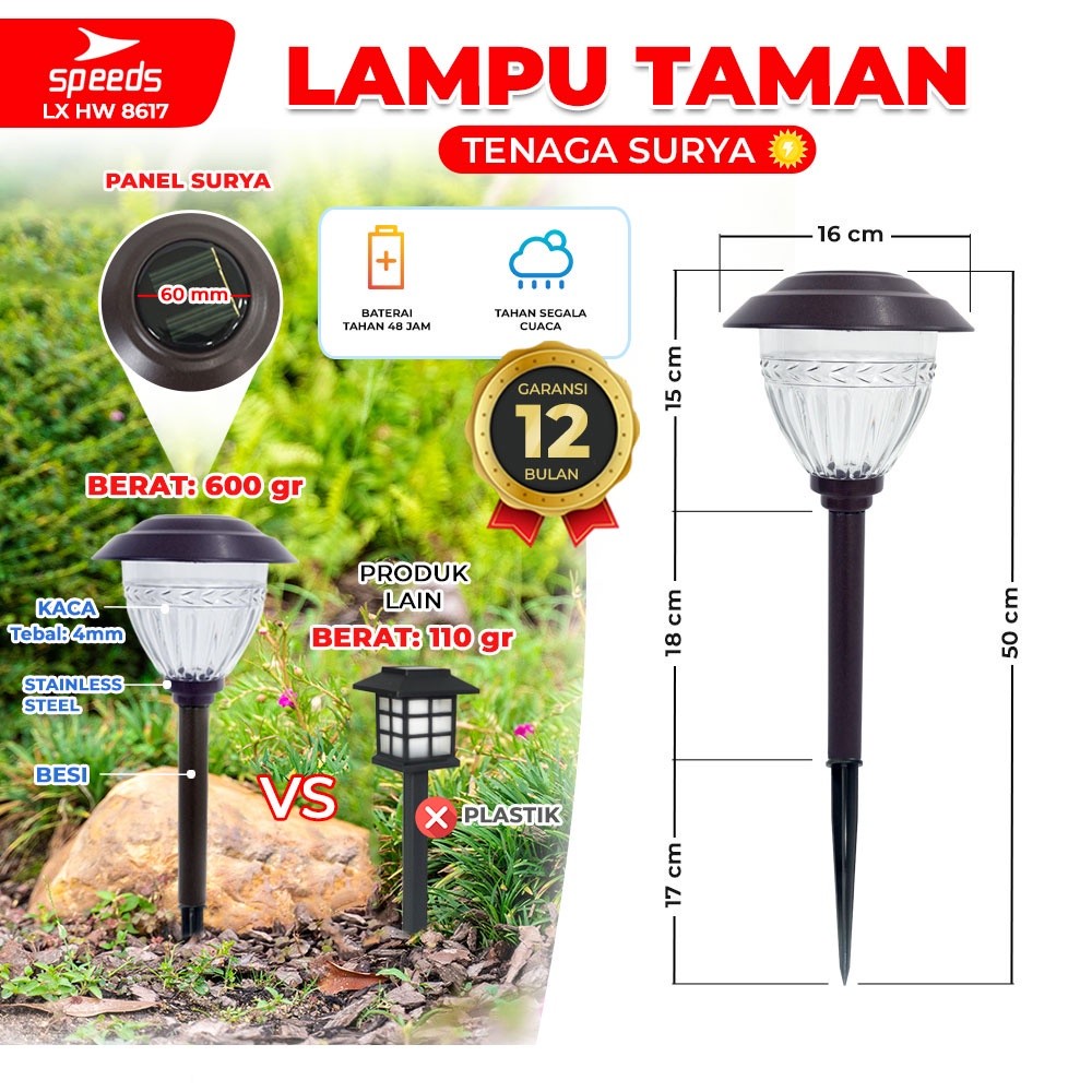 SPEEDS Lampu Taman Tenaga Matahari Lamp Hias Garden Lampu Lampu Tancap Taman Outdoor 202-1903C