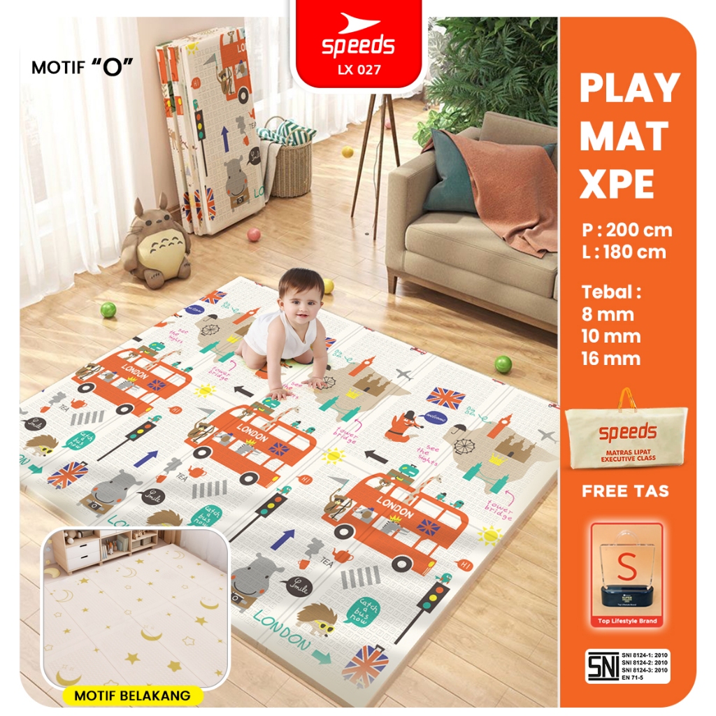 SPEEDS SNI O Playmate Bayi Karpet Lipat Playmat Bayi Asli Bahan XPE 180x200cm 8-10mm Foam Tebal 027-15