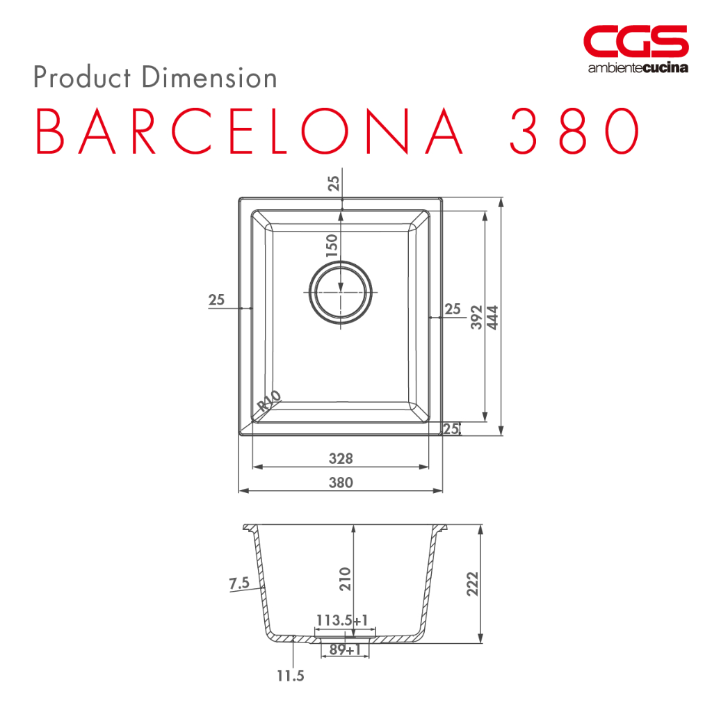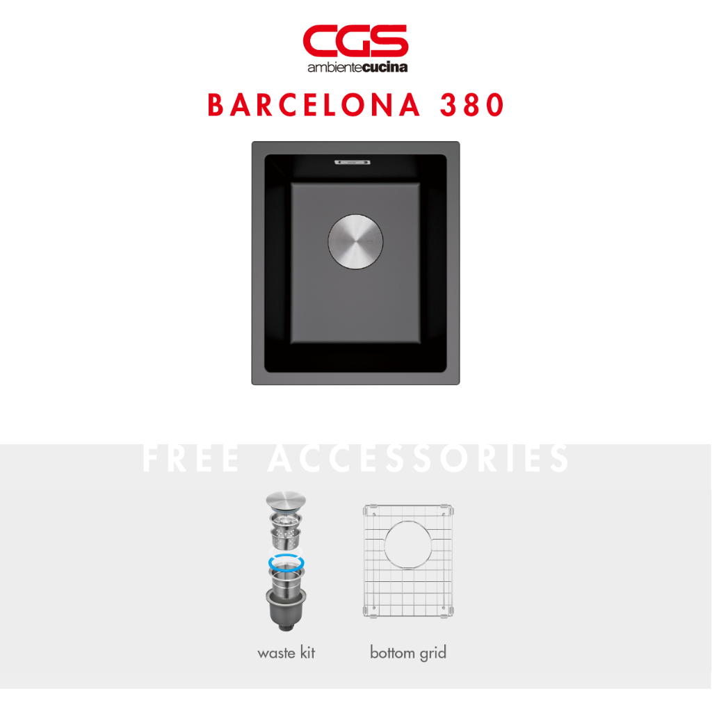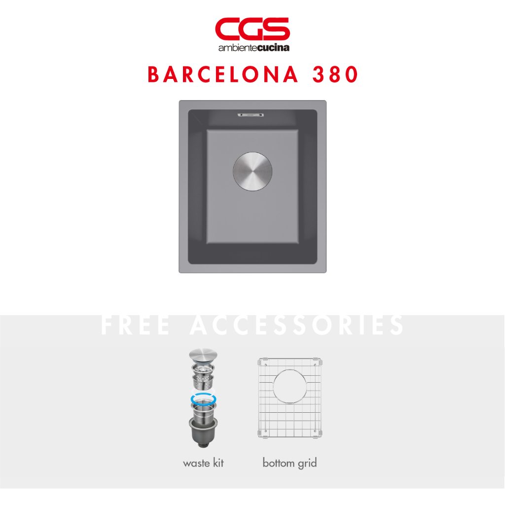 Kitchen Sink Bak Cuci Dapur Granit 1 Lubang CGS BARCELONA 380 Rockgranite Sink - Undermount Topmount