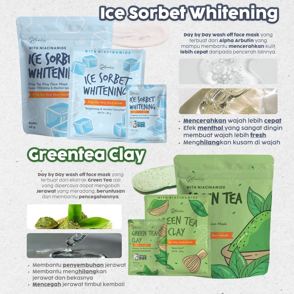 Paket Masker Lea Gloria Mencerahkan Masker Wajah Bubuk Organik 50gr