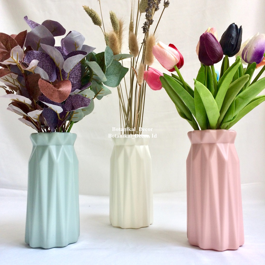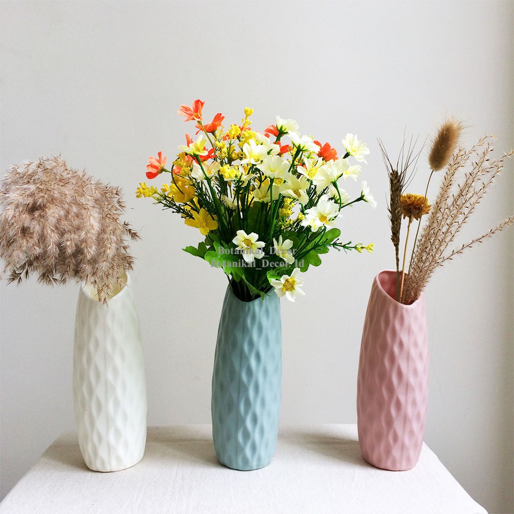 Vas Pot Bunga Tanaman Imitasi Plastik Motif Texture Ceramics Wave Wood Diamond Hiasan Dekorasi