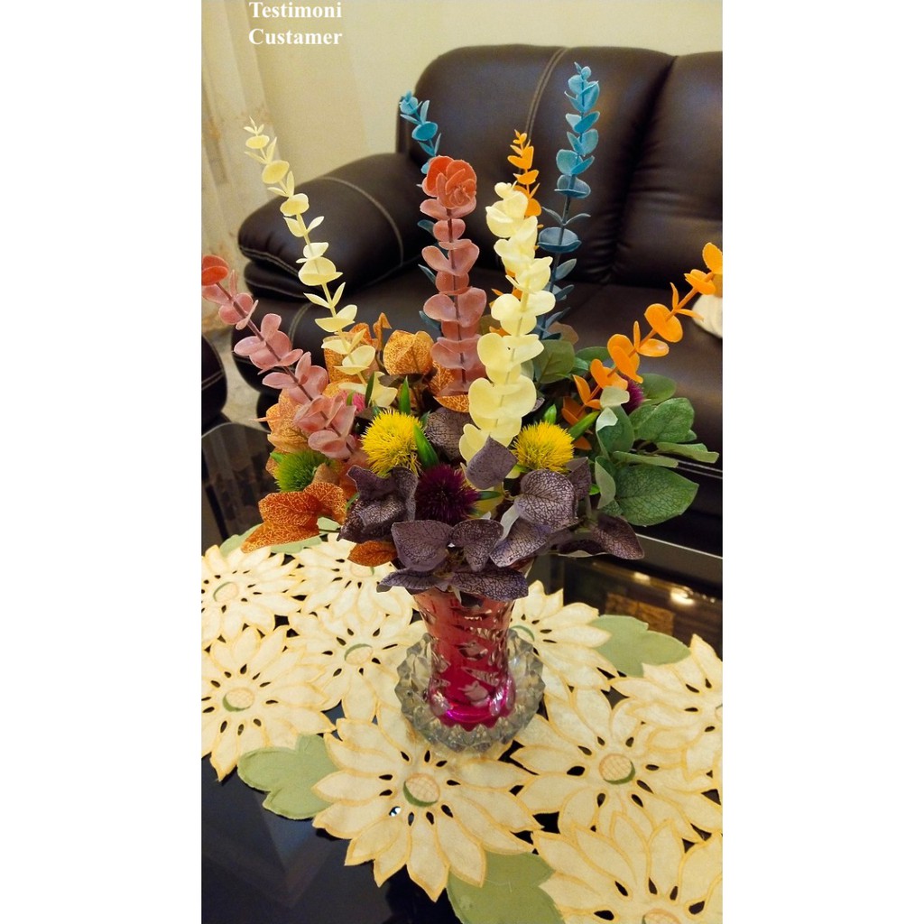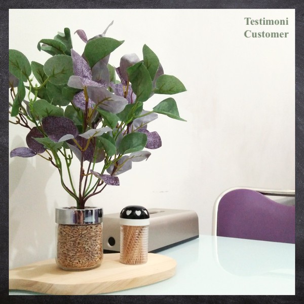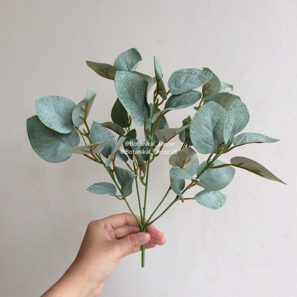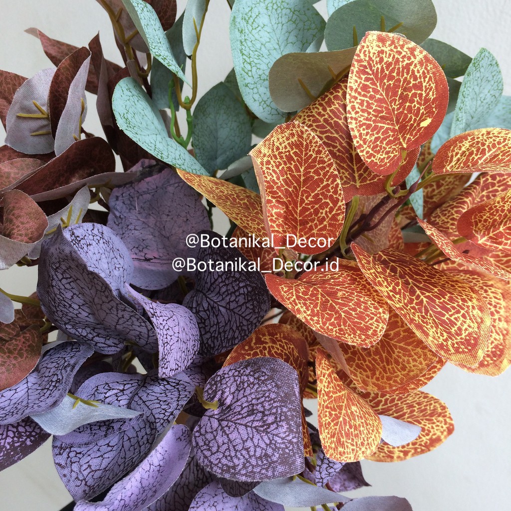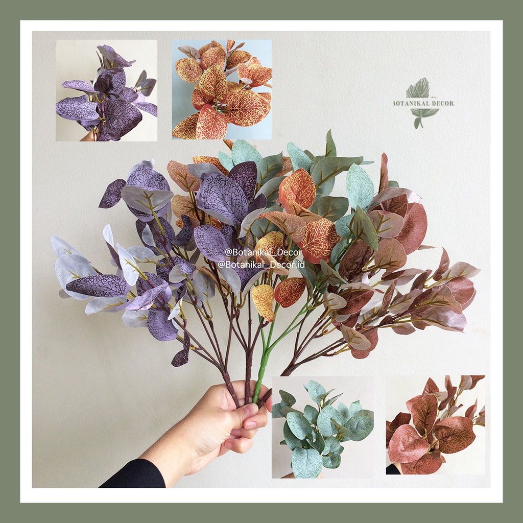 Artificial Flower 5 Stem Eucalyptus Palsu hiasan bunga dekorasi ruang tamu hijau ungu coklat kuning