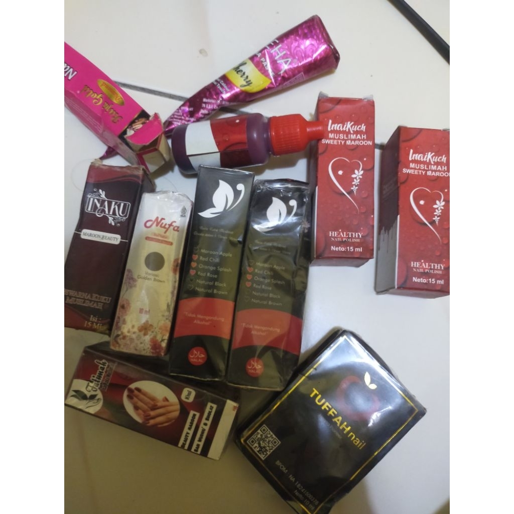 Nauraa , Inaku, Fatimah , Nufa, Neha, Inskuch, Rajni Gold Kutek Muslimah Nail Henna Kuku Halal BPOM