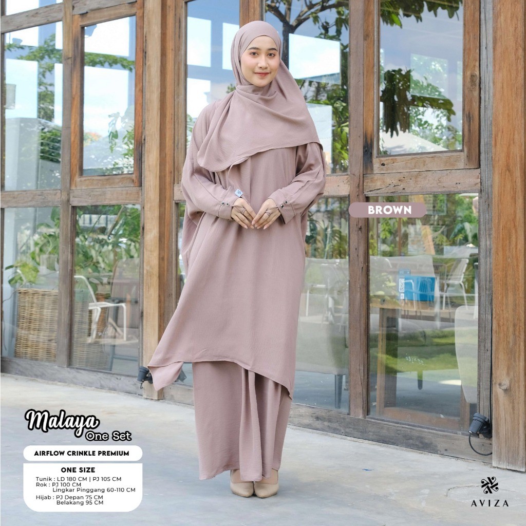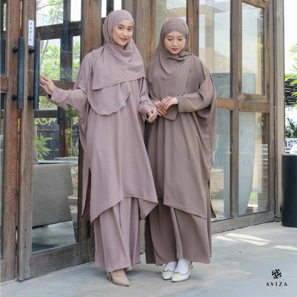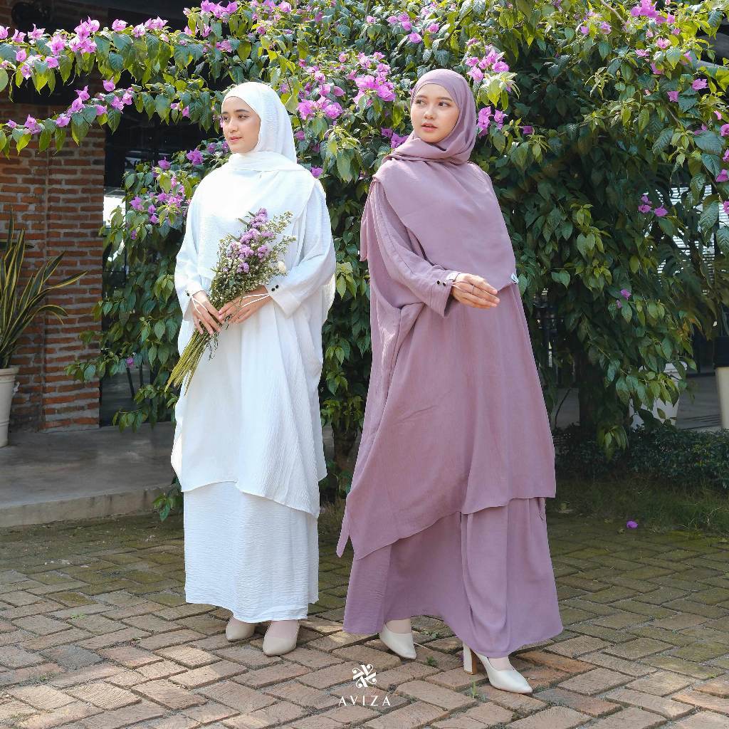Aviza - Oneset Tunik Malaya Hijab Rok | Setelan Wanita Muslim Modern | Set Umroh Syar'i Elegan