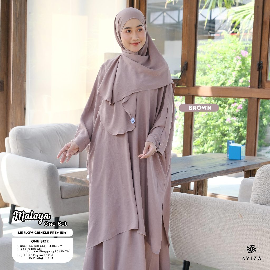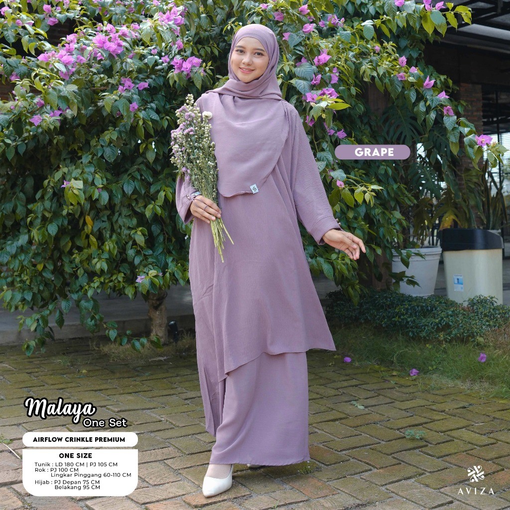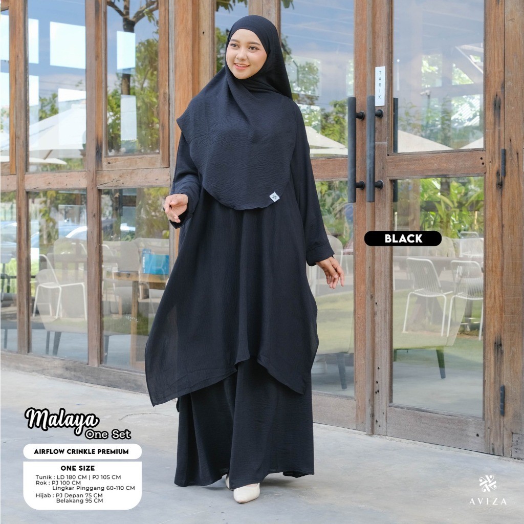 Aviza - Oneset Tunik Malaya Hijab Rok | Setelan Wanita Muslim Modern | Set Umroh Syar'i Elegan