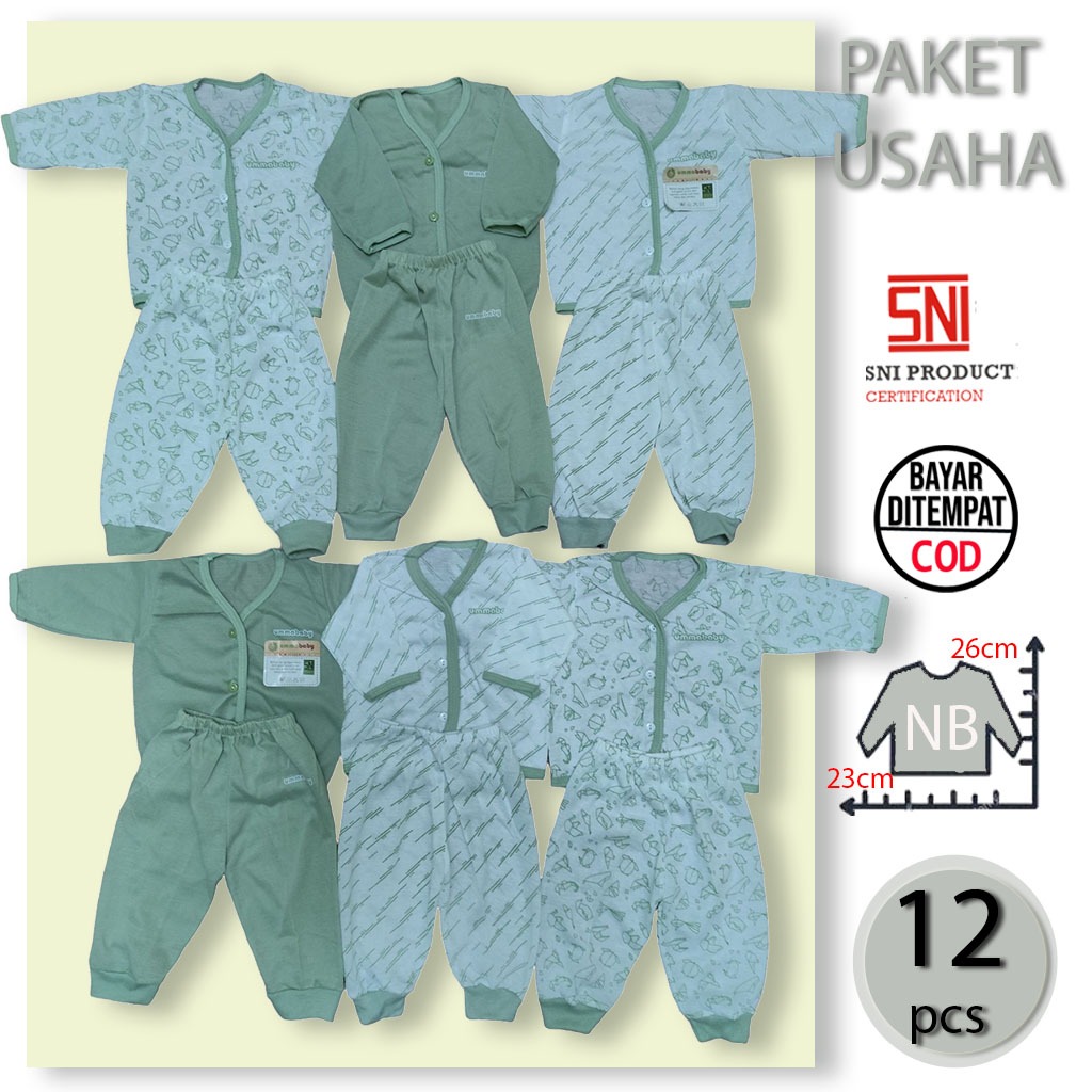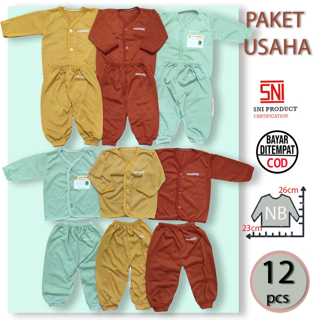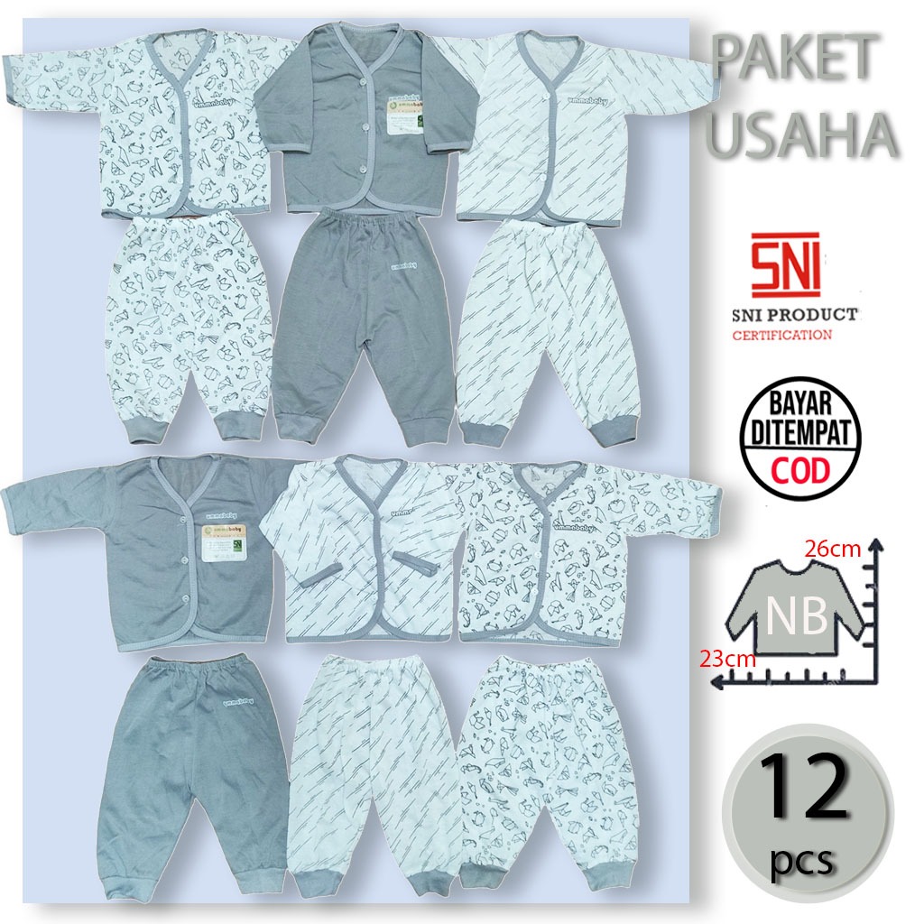 PAKET USAHA 1 Lusin/6 Set Baju Bayi Panjang Celana Piyama Setelan Newborn Baru Lahir Atasan Murah Lucu Cowok Cewek Perempuan Laki Bis Polos Motif Ekonomis Gift Set BisM