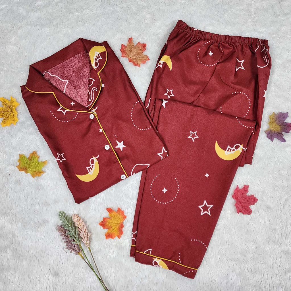 Baju Tidur / Piyama Wanita Dewasa (Lengan Panjang & Celana Panjang, LD 104 CM), Untuk BB 36 - 55 KG