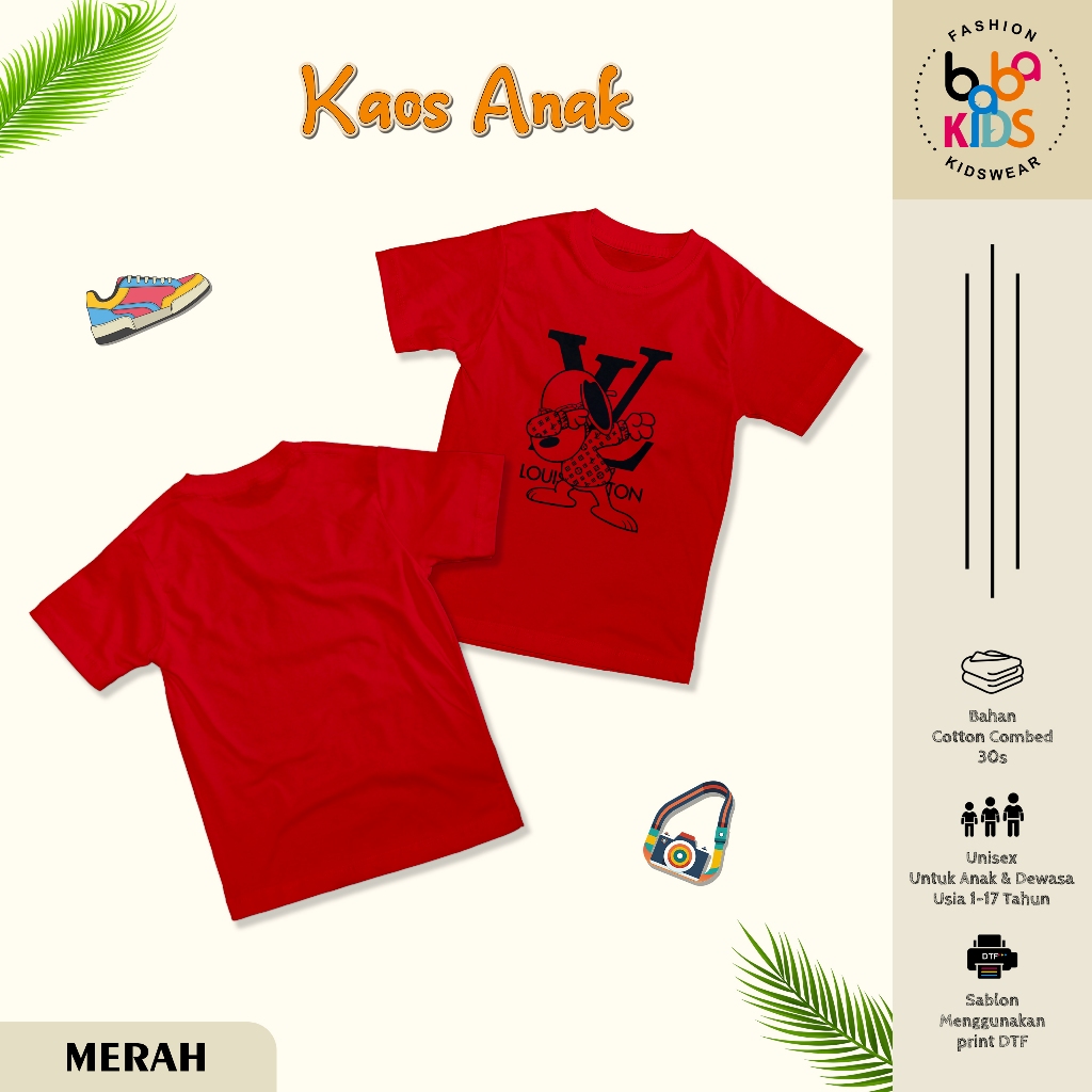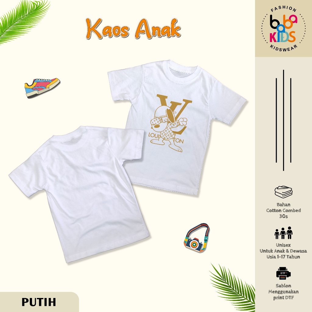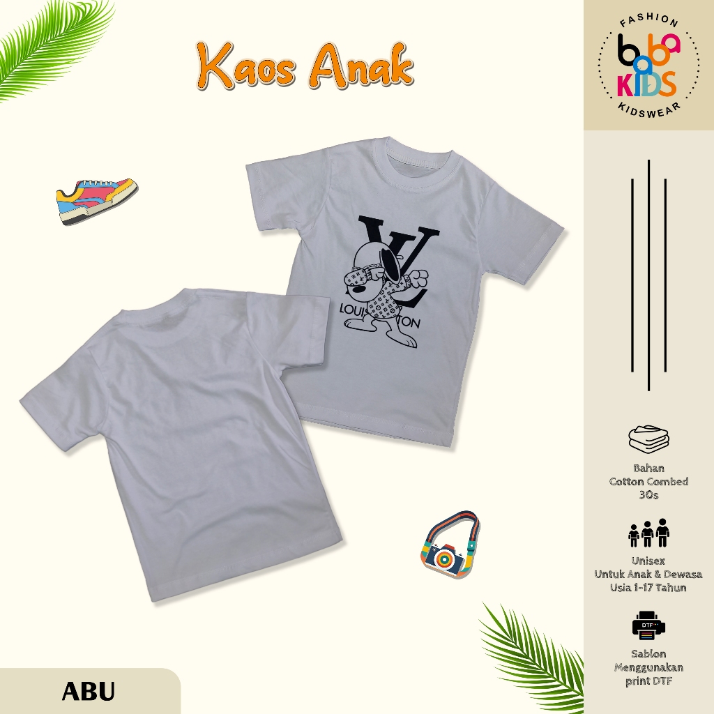 Kaos Anak & Remaja Laki-Laki LV SNOOPY cotton Combet 30s Baju Kaos Anak Cowok