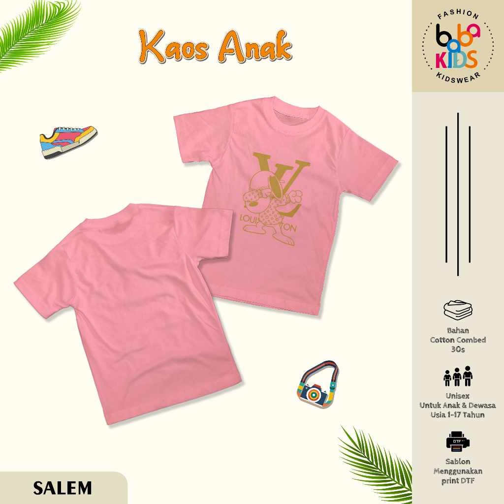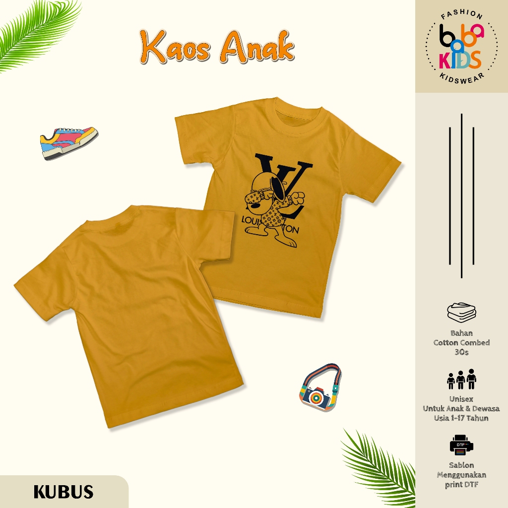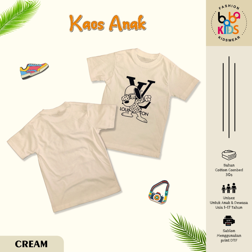 Kaos Anak & Remaja Laki-Laki LV SNOOPY cotton Combet 30s Baju Kaos Anak Cowok
