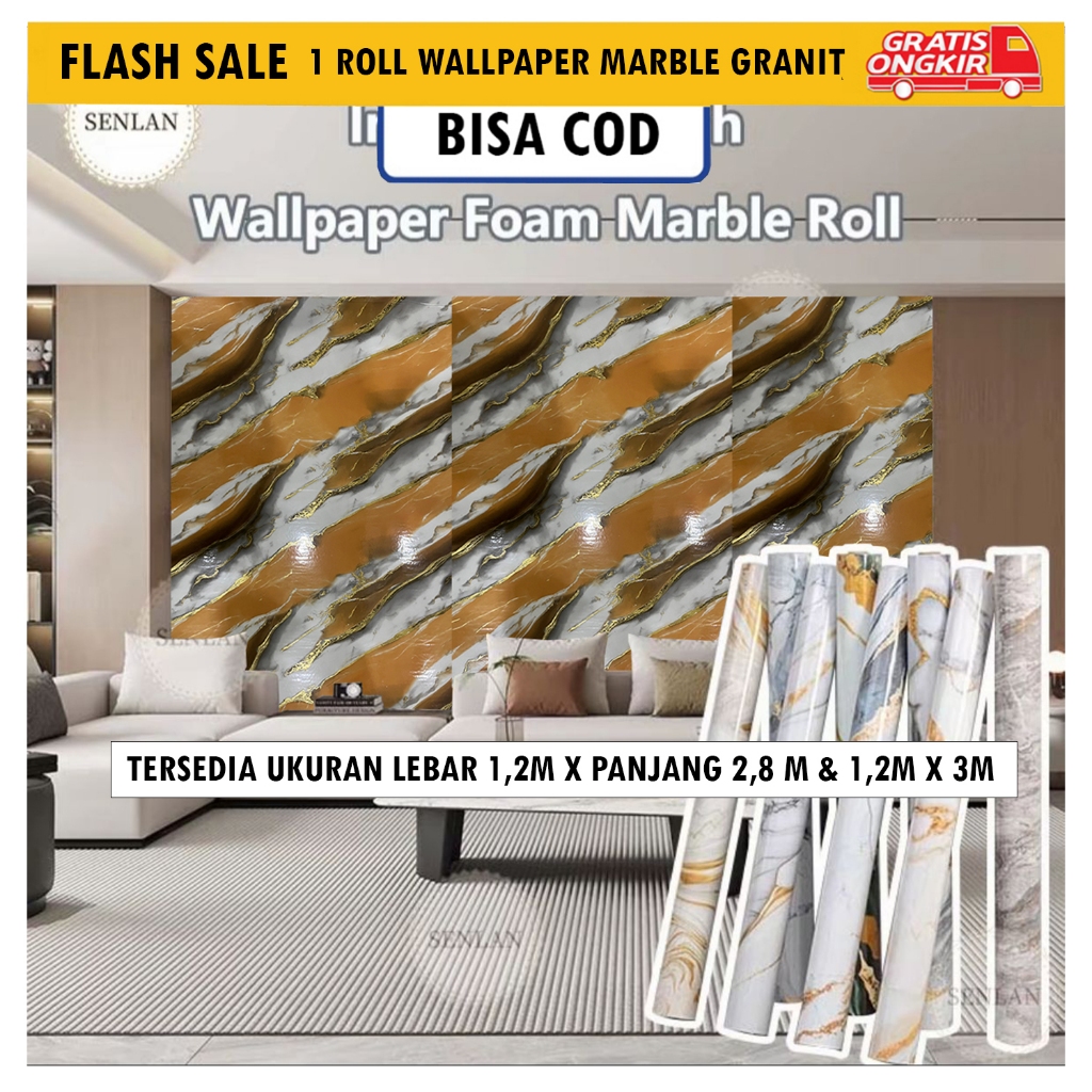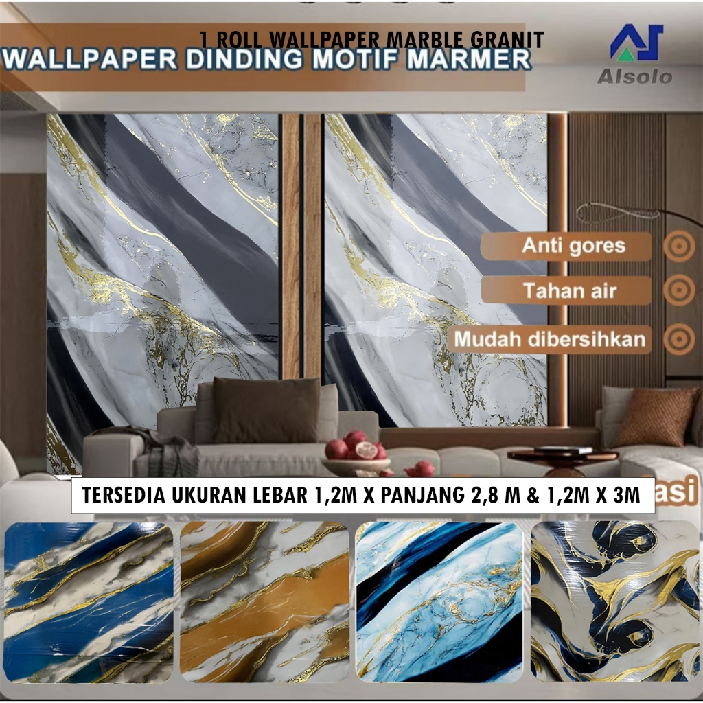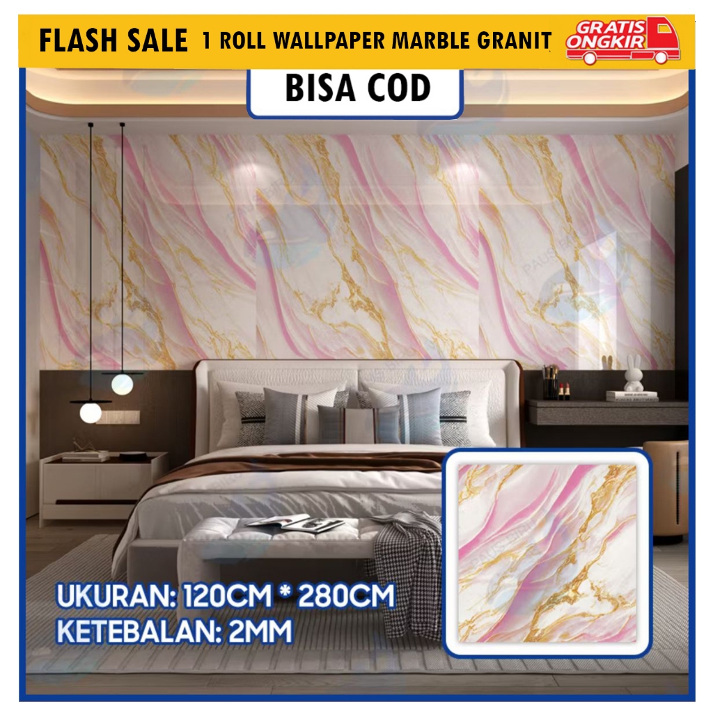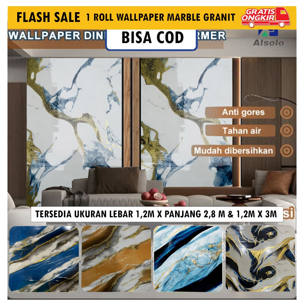 Wallpaper Dinding Motif Marble Roll 1.2m x 3m Sticker Dekorasi Kamar & Ruang Tamu