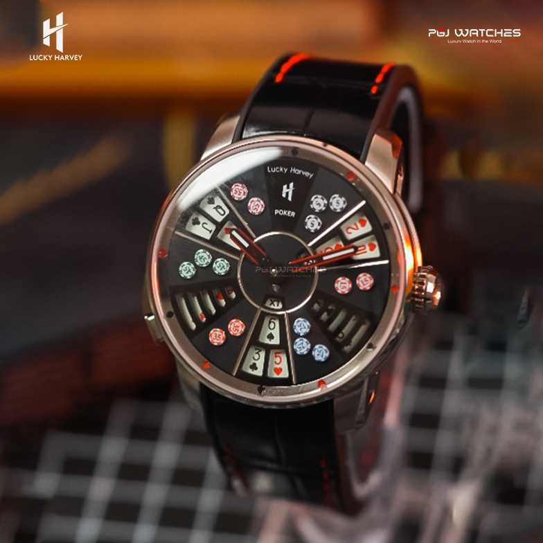 LUCKY HARVEY New Three Card Poker Men’s Watch Automatic Skeleton Poker-Motif