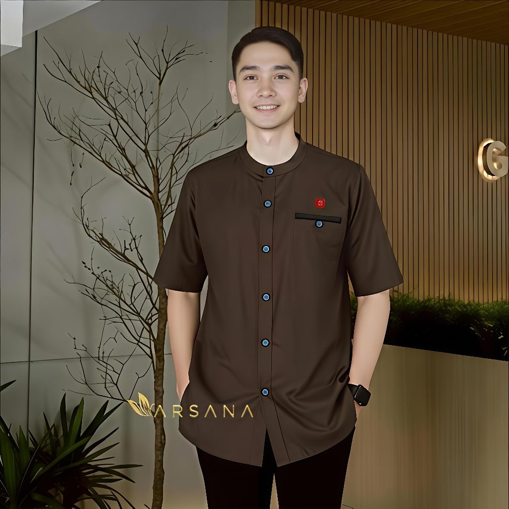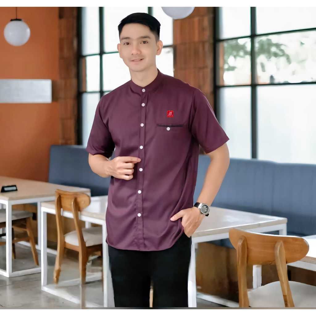 Baju Koko Polos Pria Dewasa Warna Mahogany Bahan Katun Toyobo Muslim Lebaran Terbaru 2026