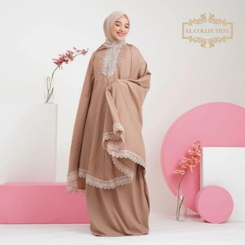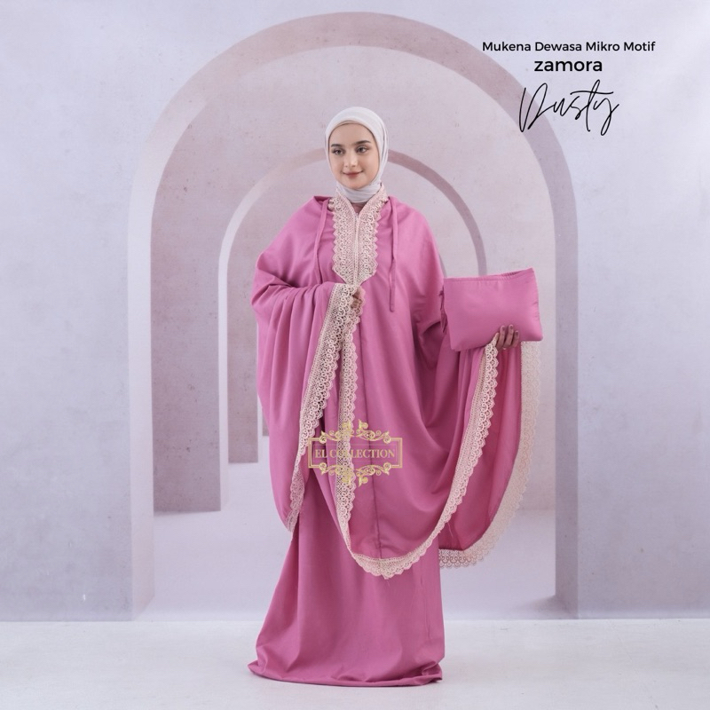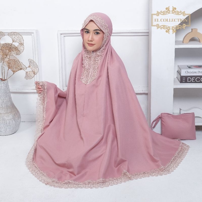 EL - Mukena Dewasa Zamora Katun Polos Renda Mewah 2In1 Jumbo