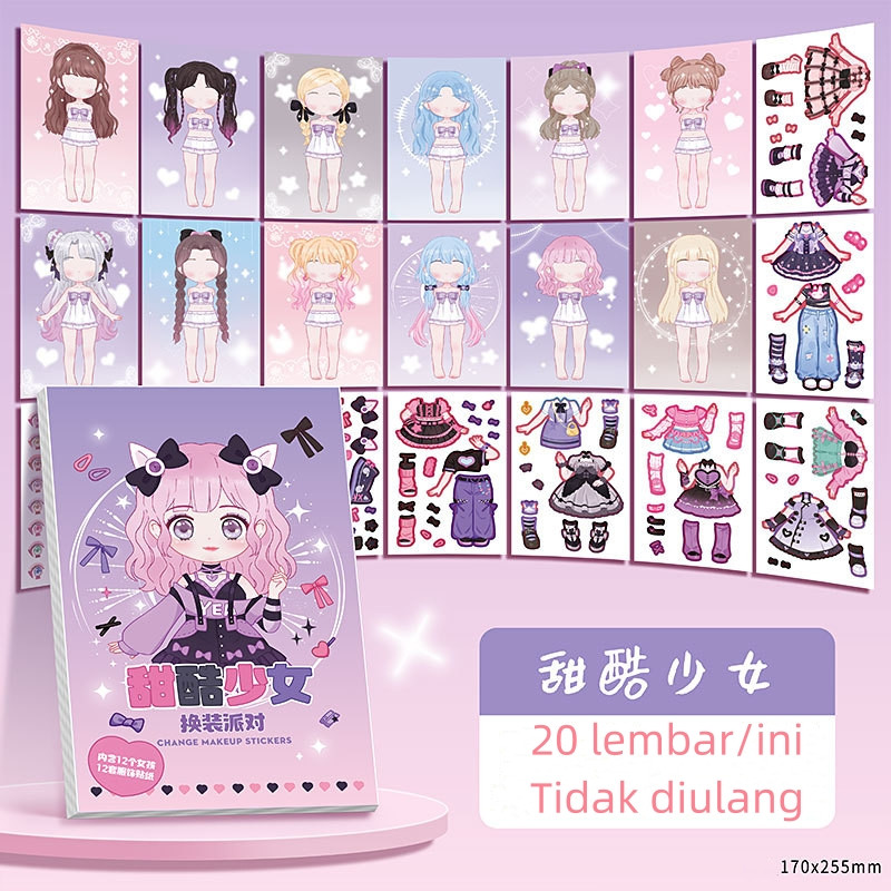 VELLE Buku Sticker Diy/ Sticker Dress Up Book/ Buku Sticker Diy Fashion Diary BP Jadul Lucu Sticker Dress Up Book Korea