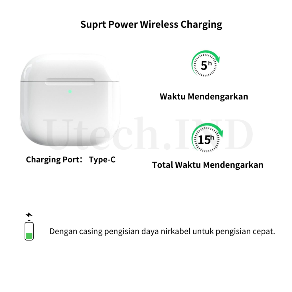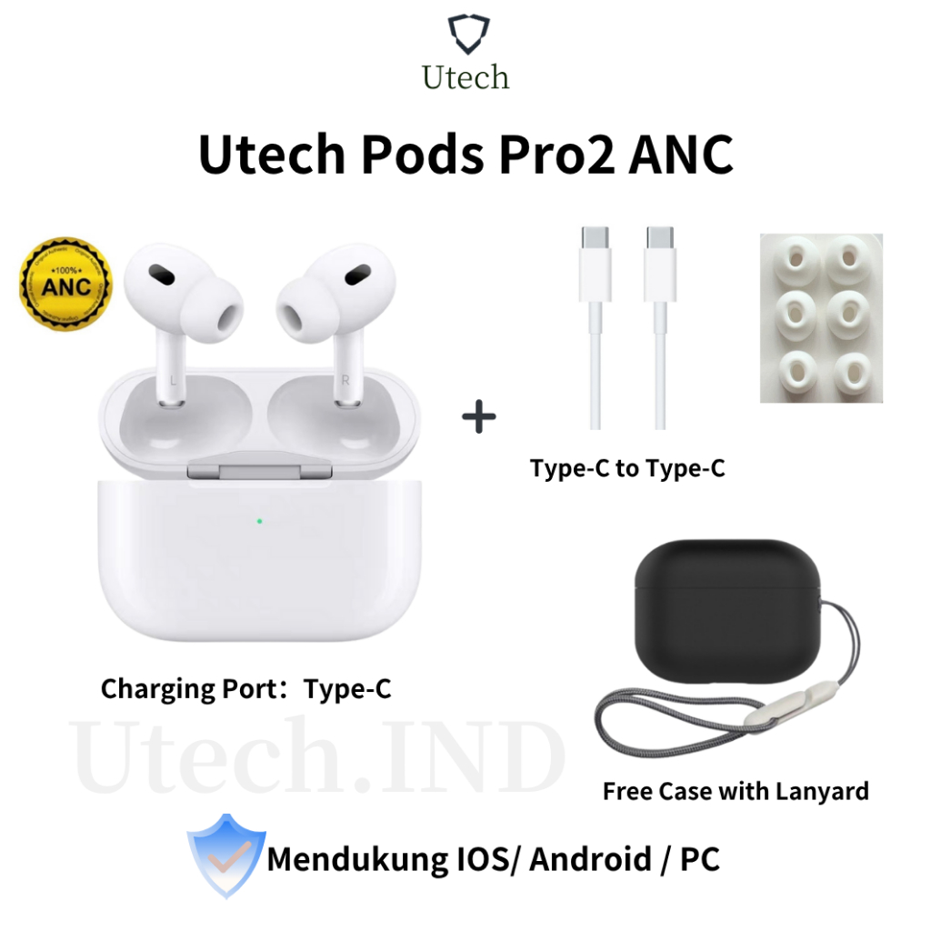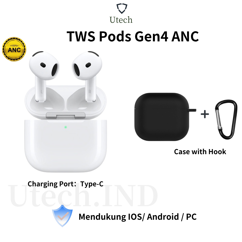 Utech TWS Bluetooth Gen4 ANC Super Bass Earphone Bluetooth Active Noise Cancellation Headset Bluetooth Wireless Earbuds Headphone hedset Gaming with Free Case For AirPods Gen 4 AirPods Gen 3 AirPods Bluetooth AirPods Gen 2