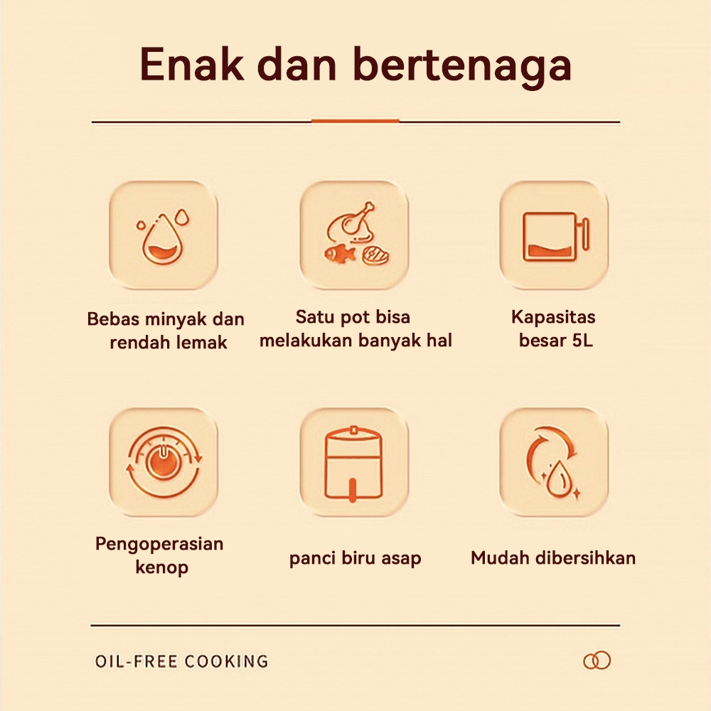 (ORI,COD)Air Fryer 5L 650W multifungsi Tombol Mekanis Anti Lengket Rendah Watt