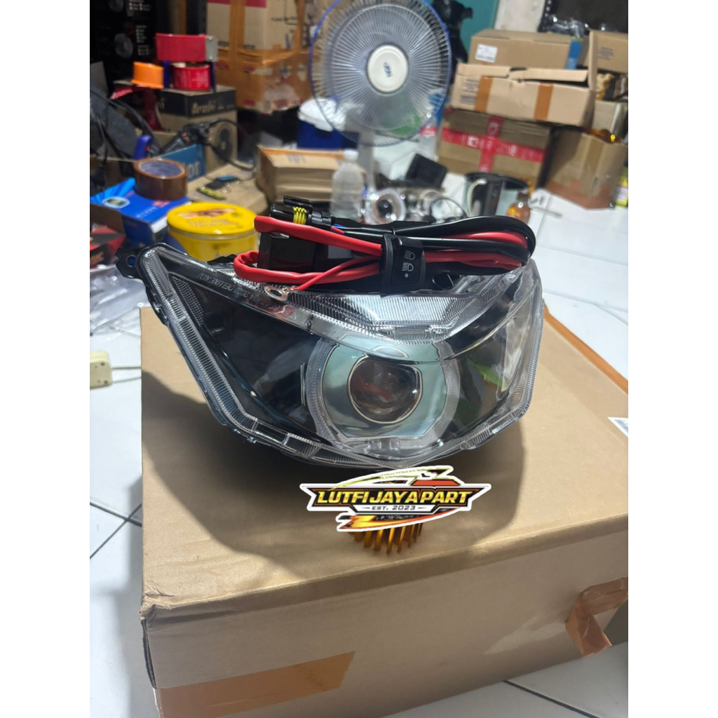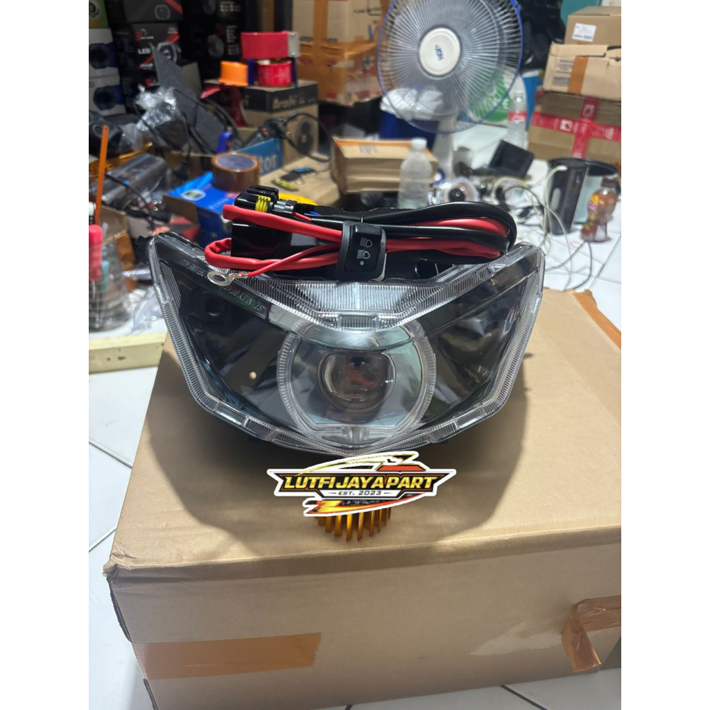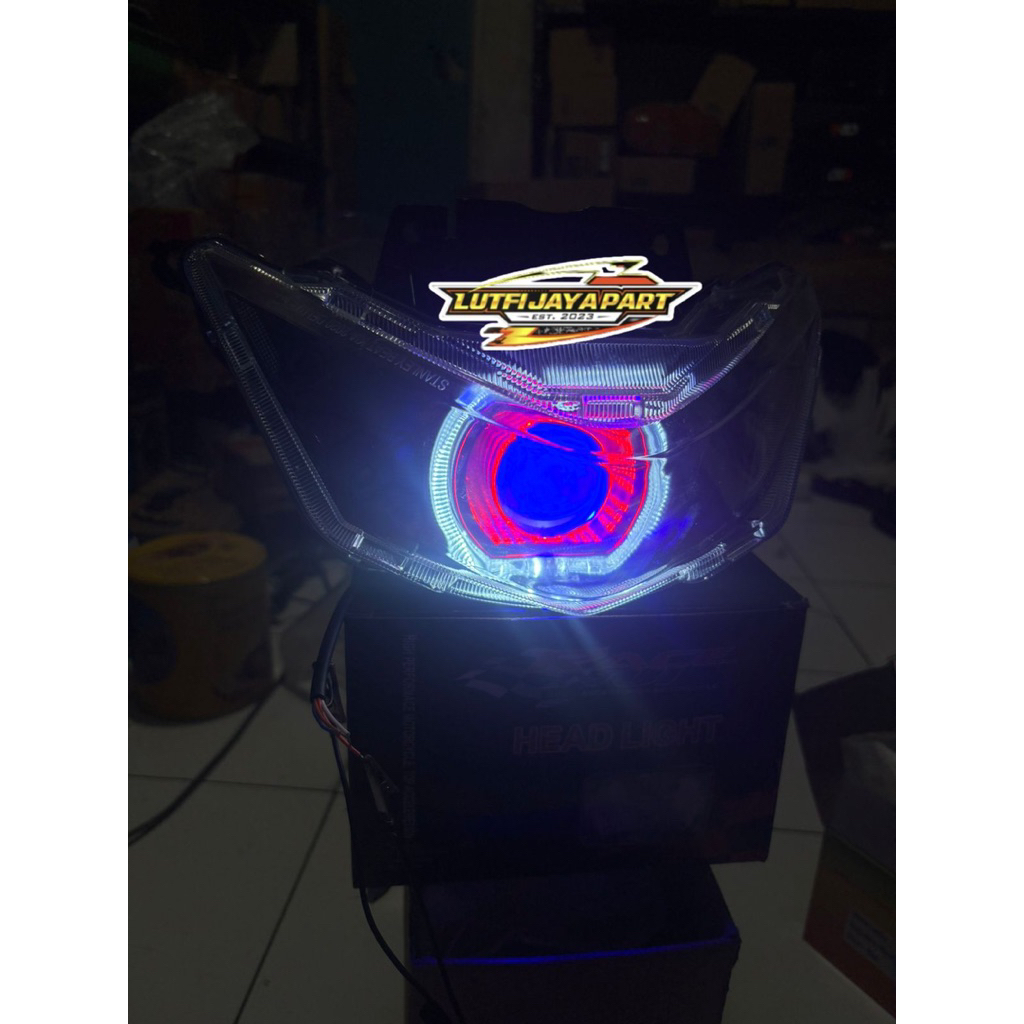 Paket kece ganteng Beat deluxe 3 dimensi reflektor plus Biled 3D 4,5 inch Beat deluxe cahaya senja keren sorot super terang kualitas Top Terbaik