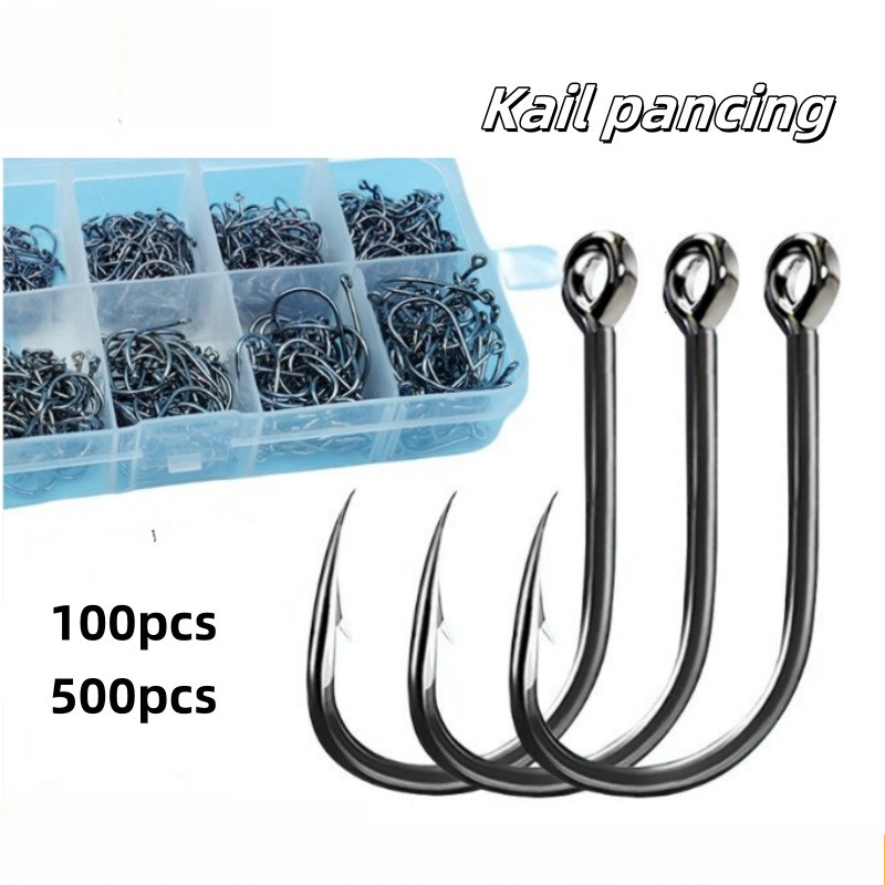 Kail pancing carbon 500pcs Kail Pancing Bahan Baja Karbon Kuat Untuk Air Tawar / Laut COD /100 Pcs Kail Pancing Aneka Ukuran Bahan Baja Karbon Dengan Tali Pengait