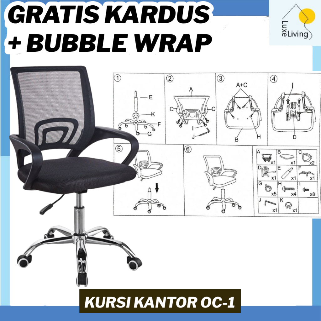 LLS Kursi Kantor Kursi Kerja Kursi Belajar Kursi Ergonomis Angkat Putar Mesh Hidrolik Kursi Staff Kursi Boss Kursi Jaring OC-1