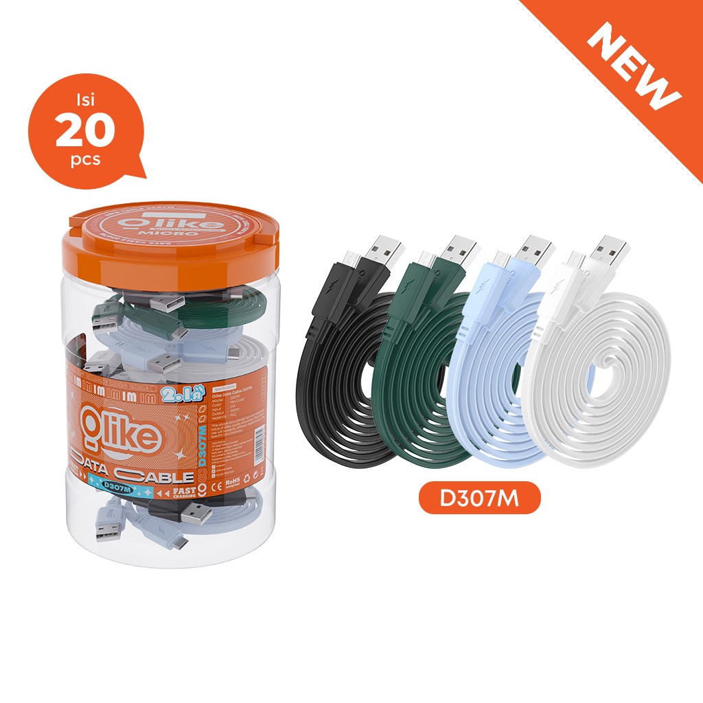 OLIKE D306 D306M D306C D306L CABLE DATA USB MICRO TYPE C LIGHTNING 2.1A / 2.4A GARANSI RESMI ORIGINAL READY STOCK ISI 20 PCS / TOPLES