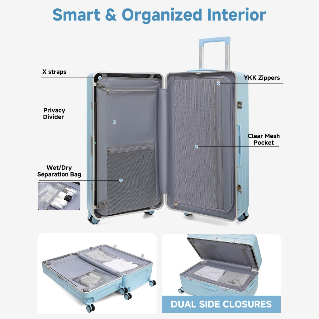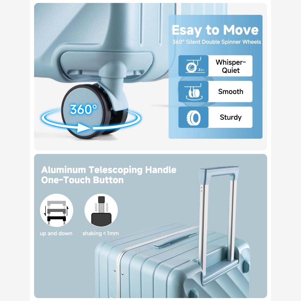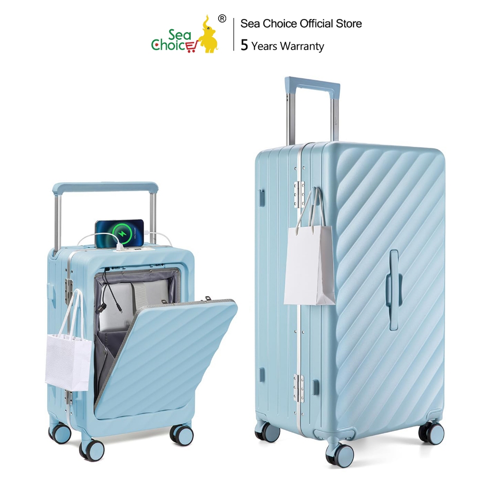 SEA CHOICE Set Koper 20” Cabin,30” Besar–PC Hard Shell,Rangka Aluminium,Kunci TSA, USB & Saku Laptop