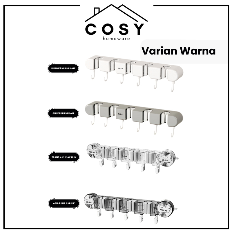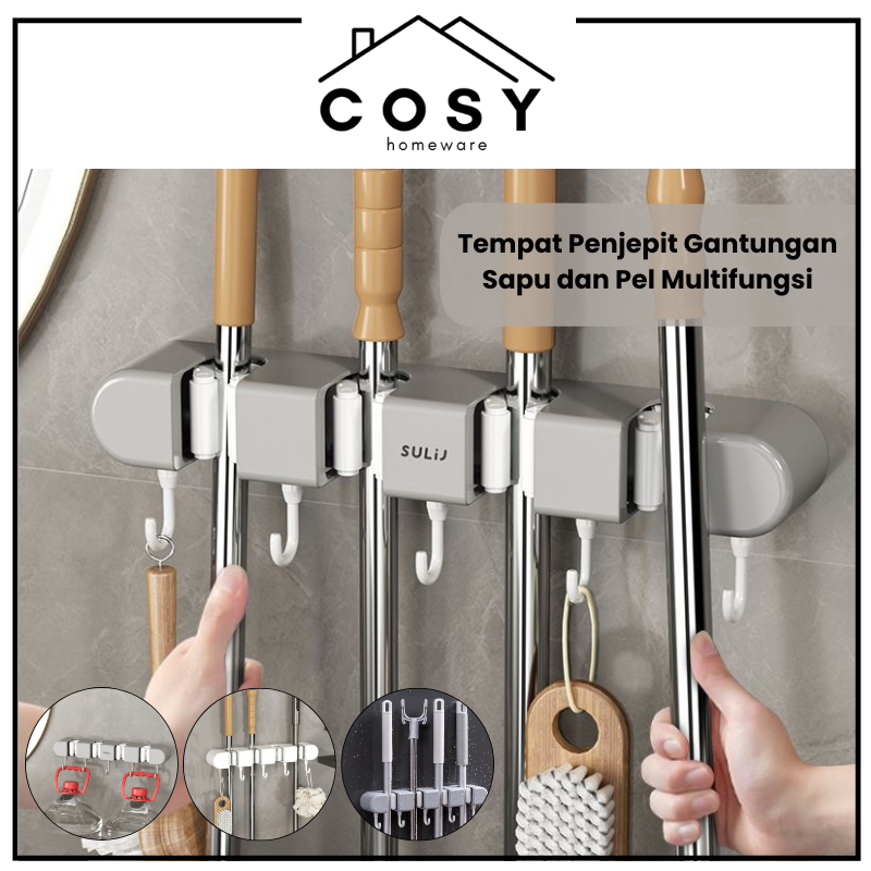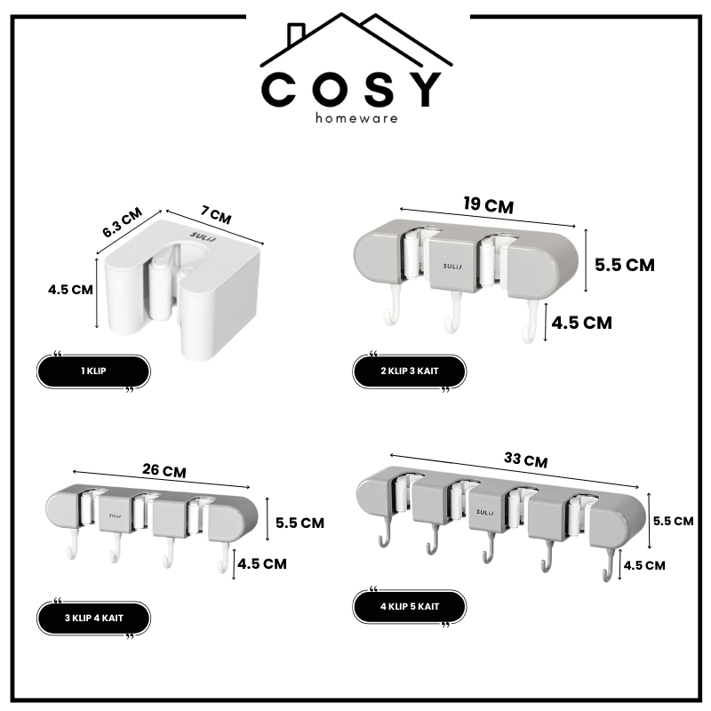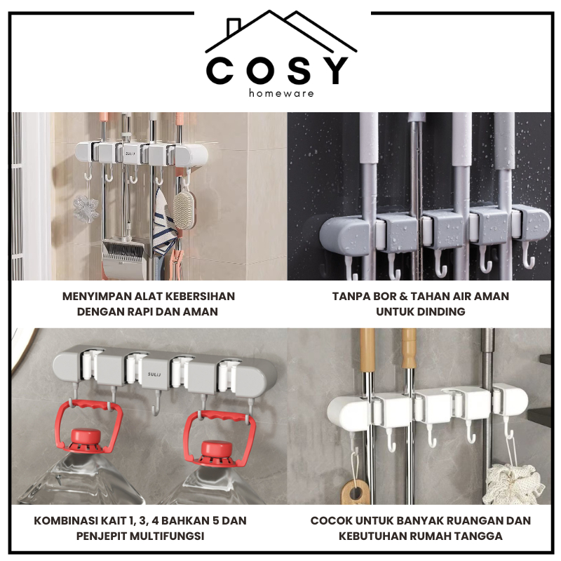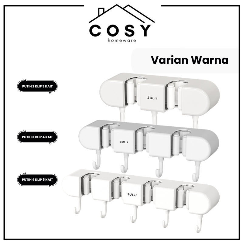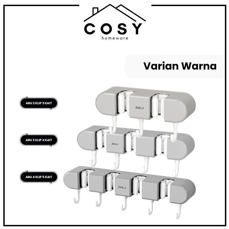 COSY Tempat Penjepit Gantungan Sapu dan Pel Estetik Multifungsi Mop Broom Holder 4 Klip , 3 Klip , 2 Klip dan 1 Klip Gantungan Klip Penjepit Organizer Cantolan Sapu Pel Tanpa Bor Waterproof Tanpa Bor
