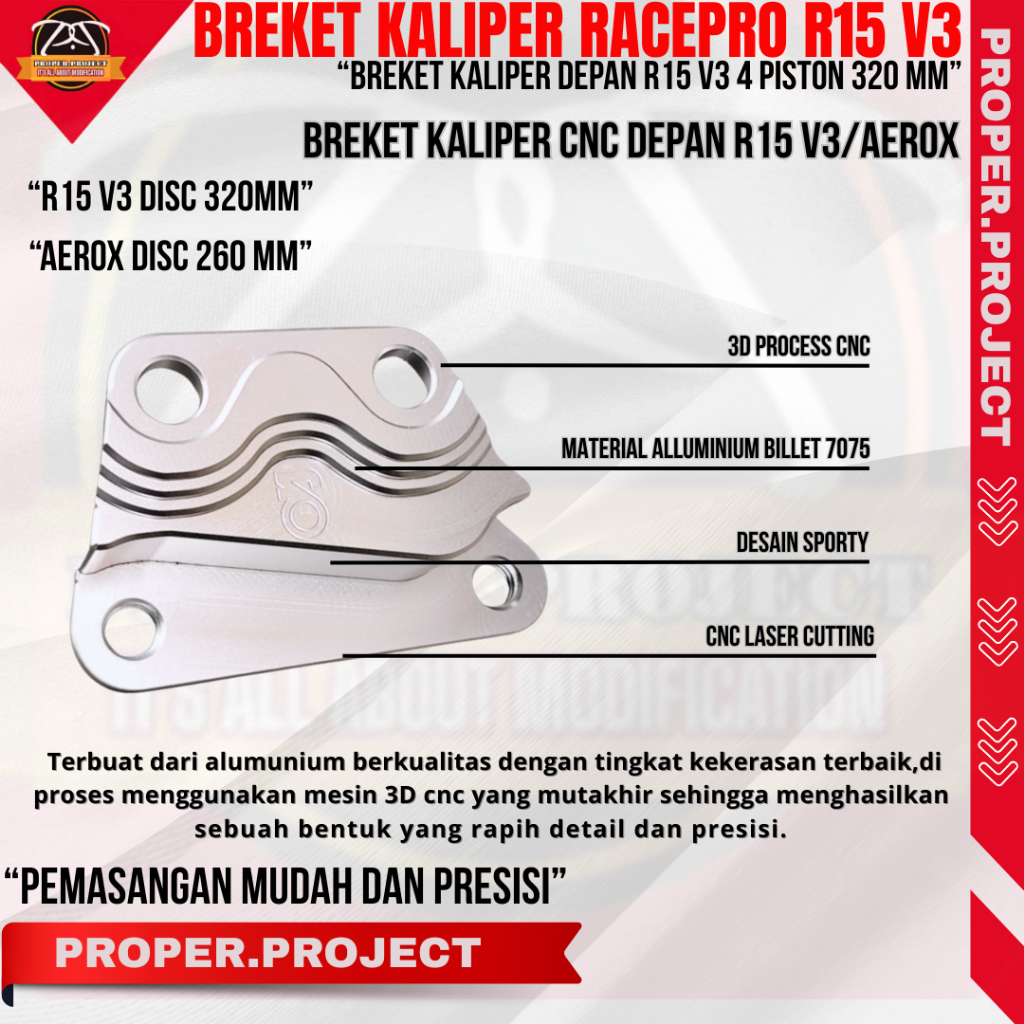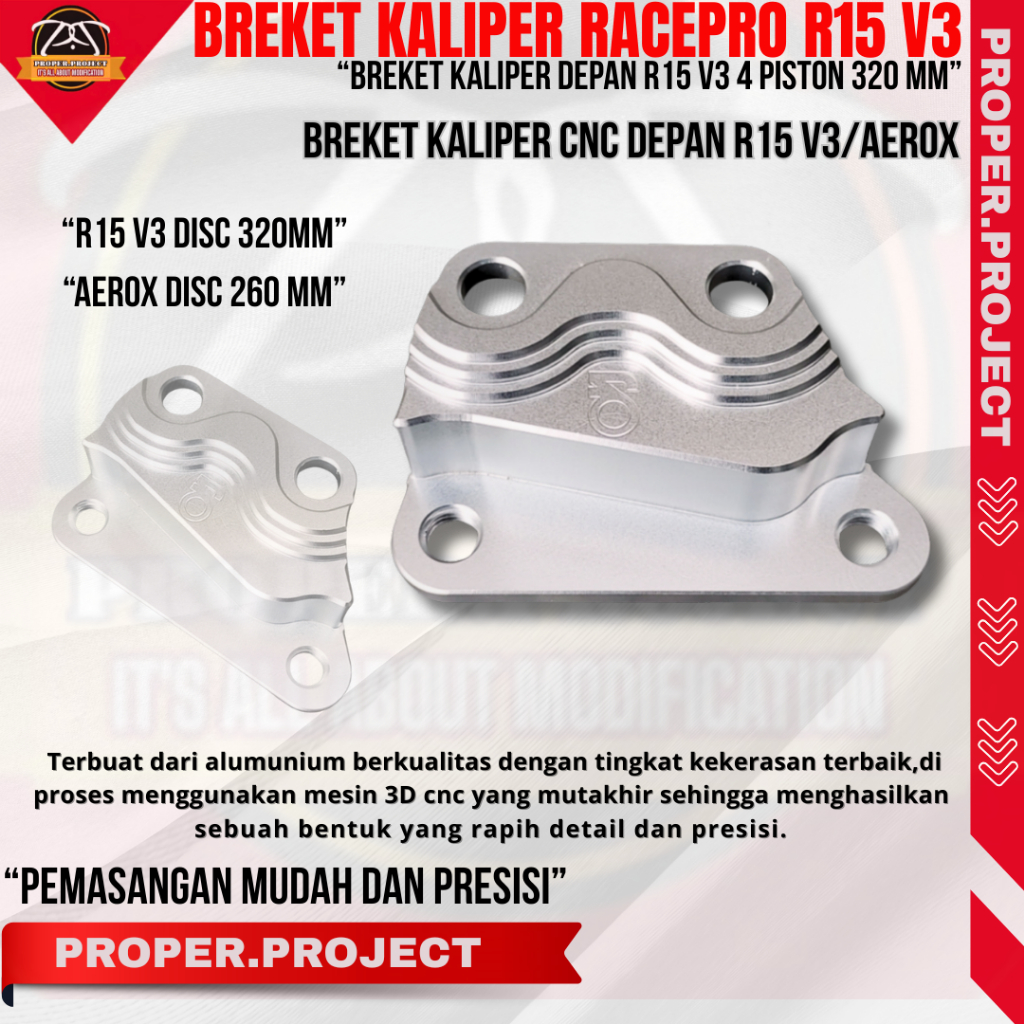 BREKET KALIPER DEPAN 4P R15 V3 DISC 300/320MM BREKET KALIPER CNC DUDUKAN KALIPER BREKET CNC RACEPRO