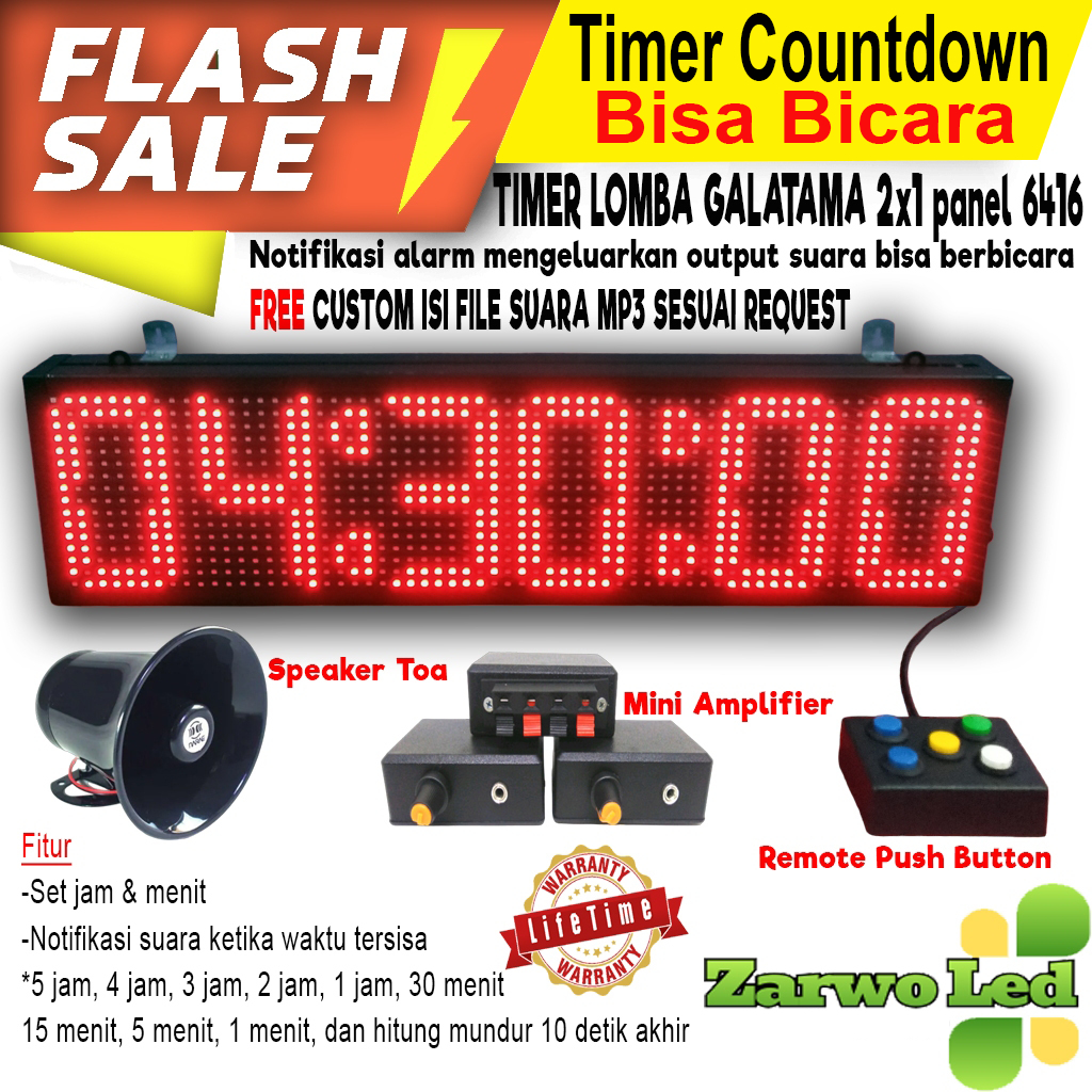 TIMER LOMBA GALATAMA - WAKTU HITUNG MUNDUR - COUNTDOWN - ALARM BISA BERBICARA 2X1 PANEL P10 6416 - MURAH SIAP PAKAI
