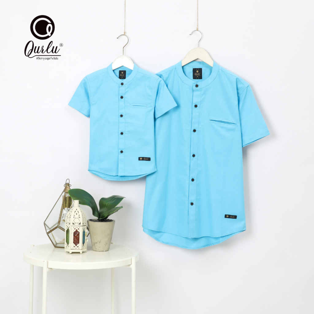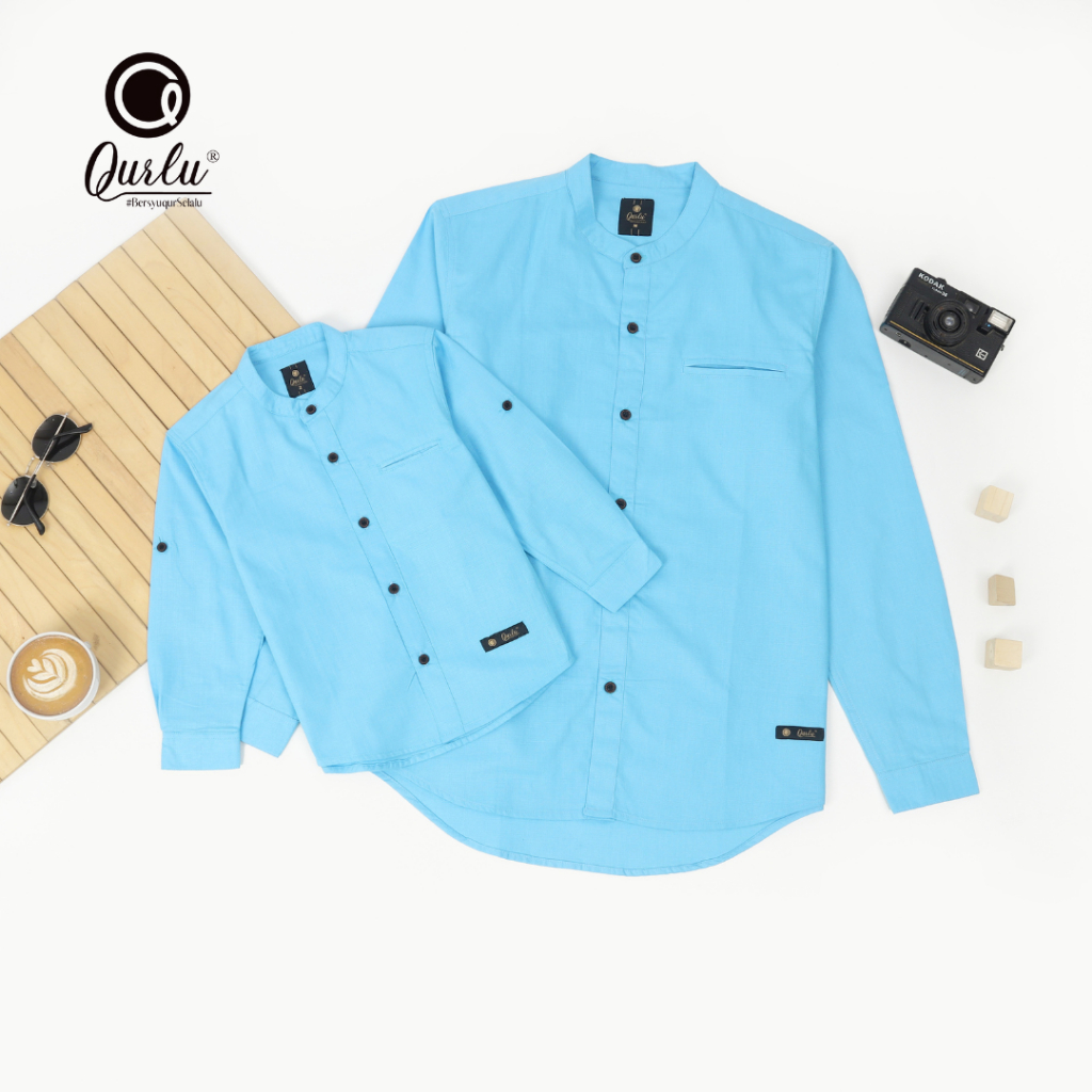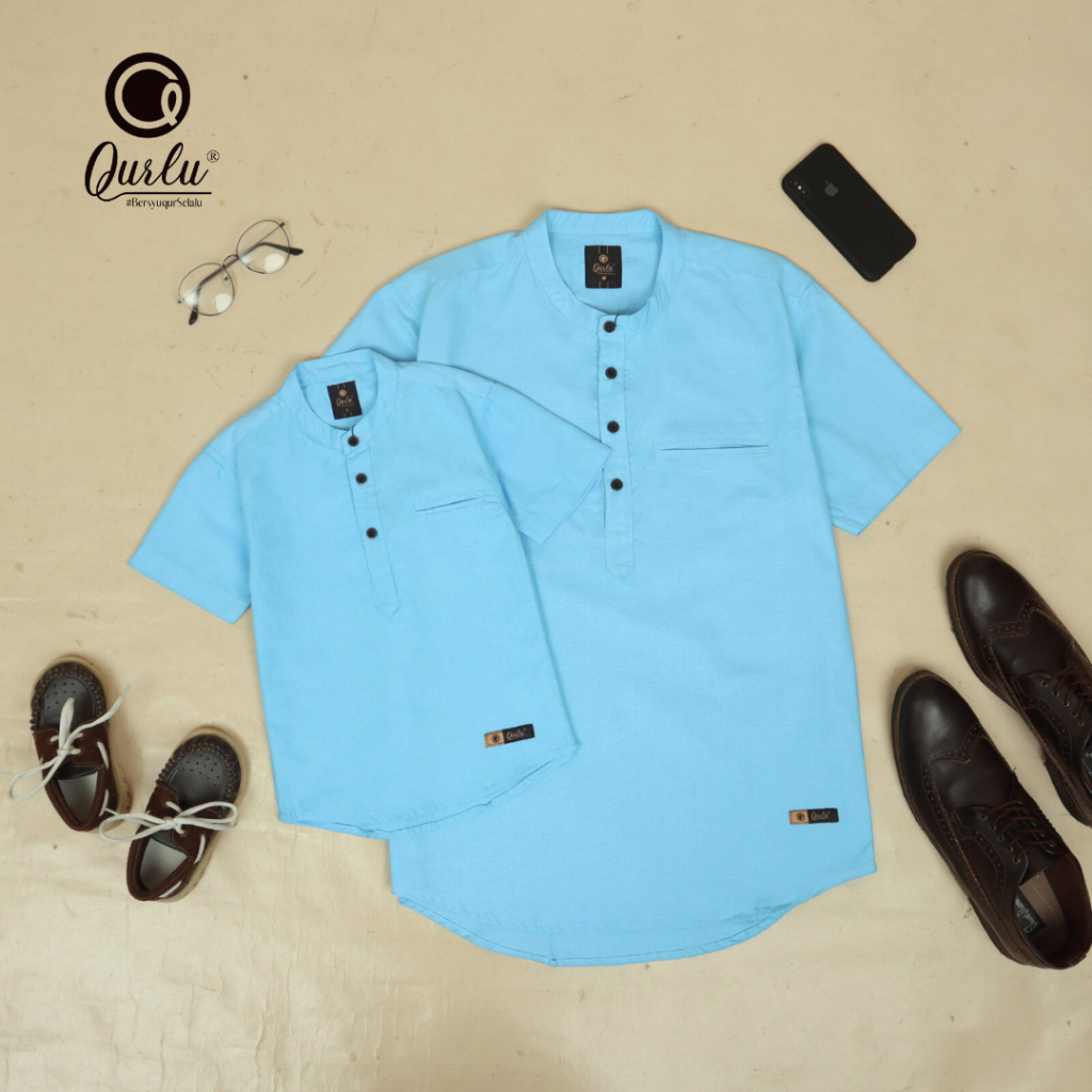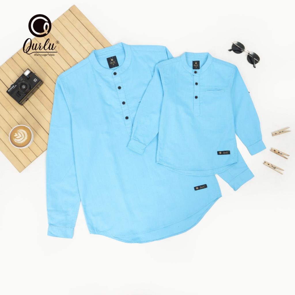 Qurlu - Kemeja Koko Dewasa/Anak warna BABY BLUE (baju couple ayah dan anak laki-laki) Baju Koko Pria