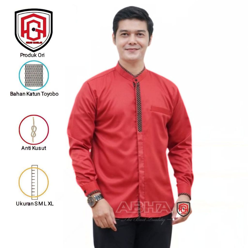 Baju Koko Pria Dewasa Lengan Panjang Terbaru Motif Afala Sage Original ABHA