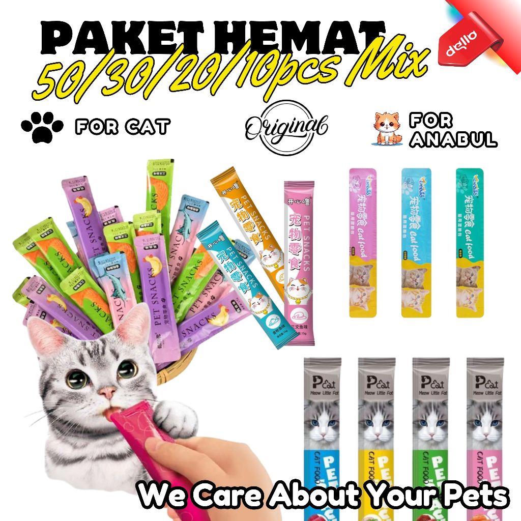Snack Kucing MIX 50 pcs | Makanan Kucing | Snack Creamy | Snack Hewan Peliharaan | Snack Strip Kucing | Cemilan Kucing | Snack Creamy DELLO FOR CAT
