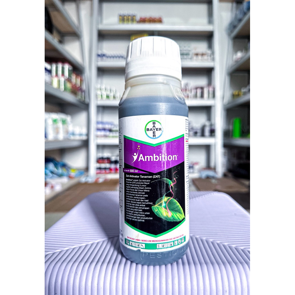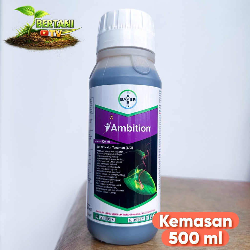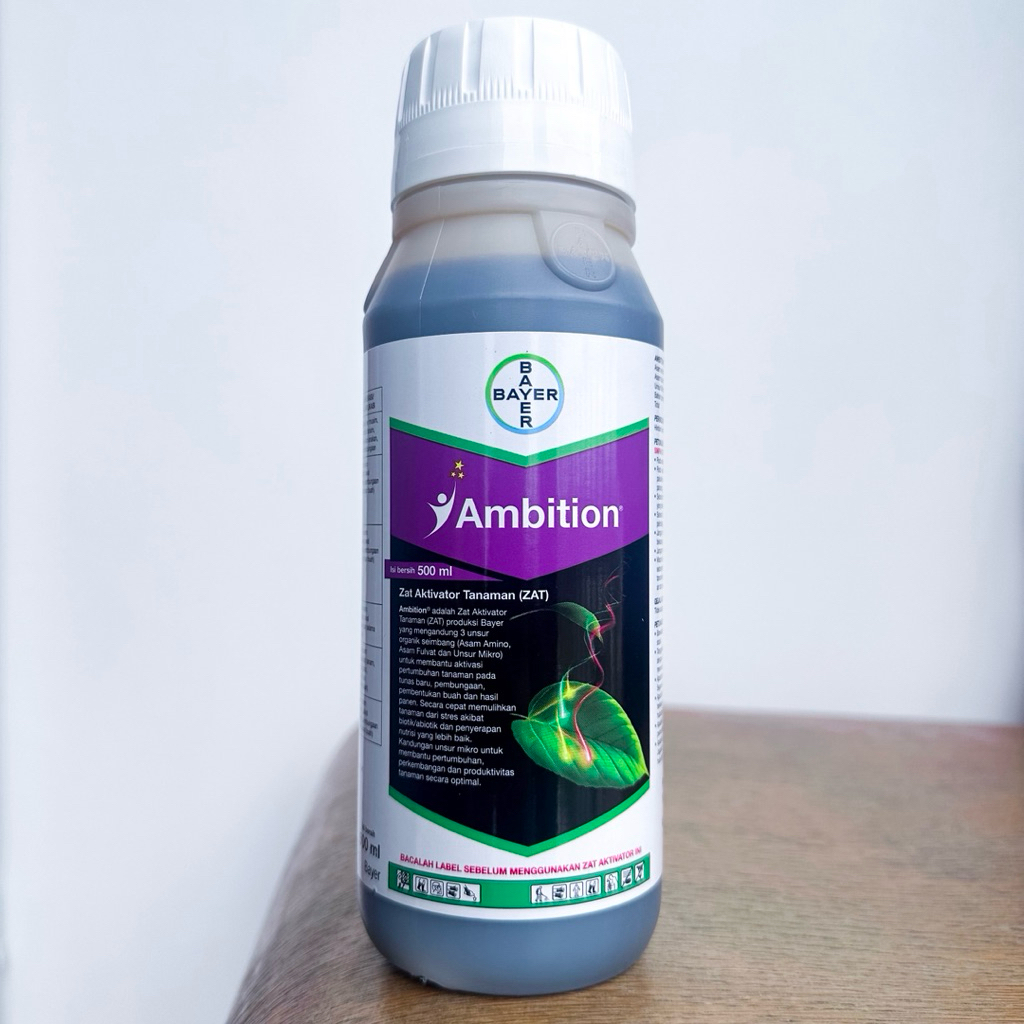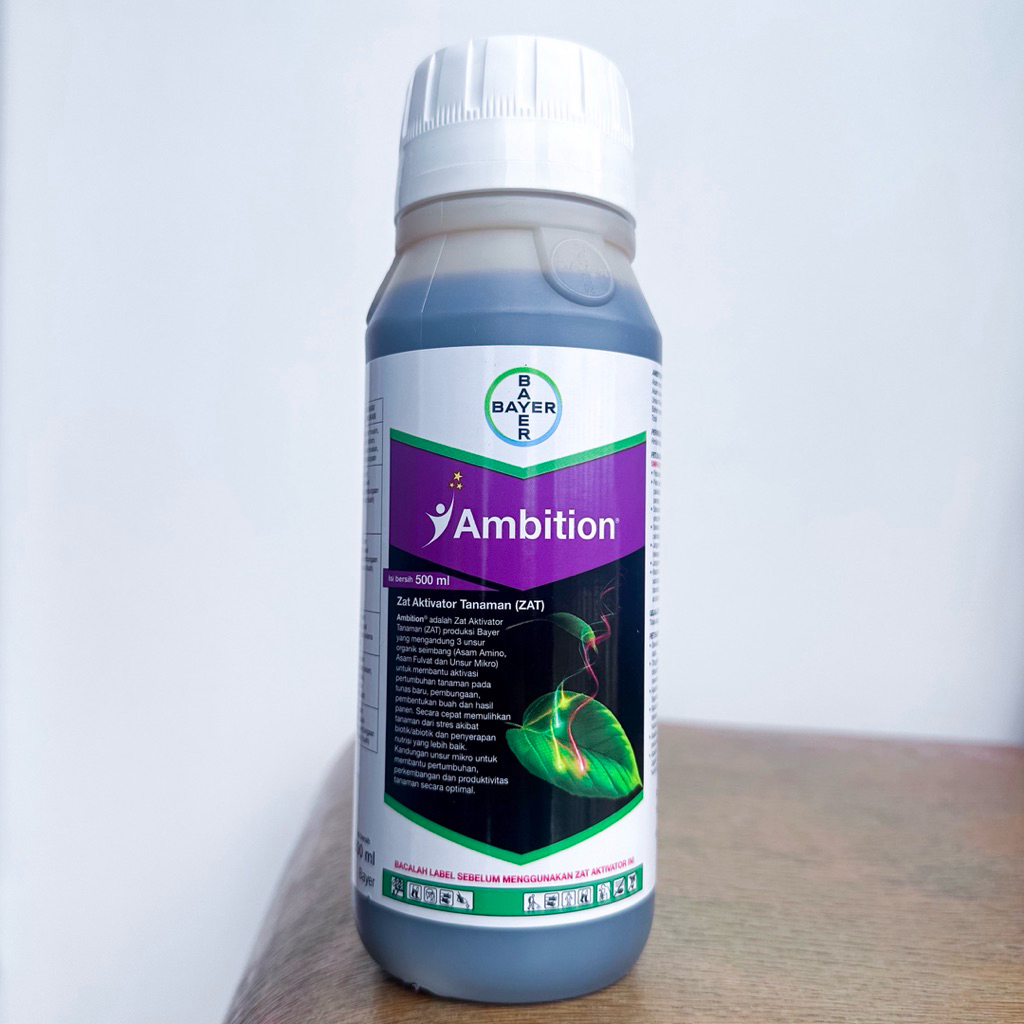 Ambition 500 ml , suplemen tanaman terbaru dari PT Bayer yang diformulasikan dengan kandungan Asam Amino, Asam Fulvat, dan Nutrisi Mikro dalam