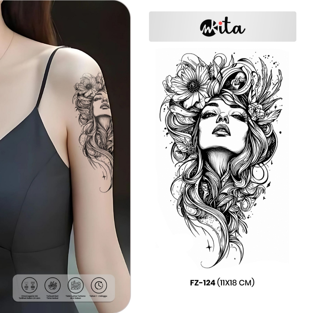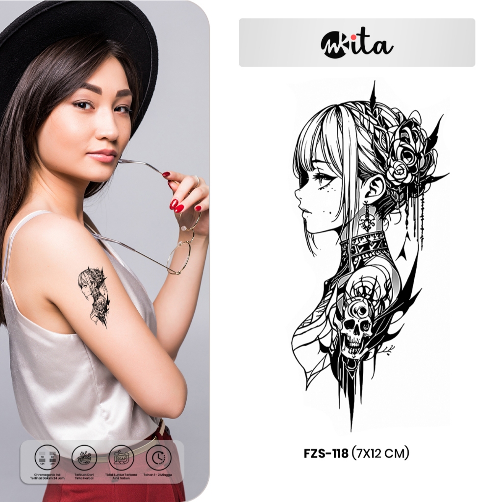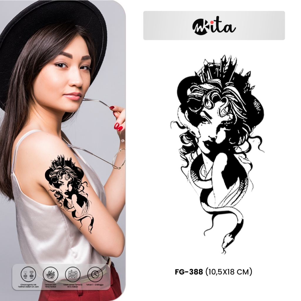 INKITA-Tattoo Semi Permanen Wanita Medusa Tatto Temporer Fruit Ink Dayak Sementara Halal