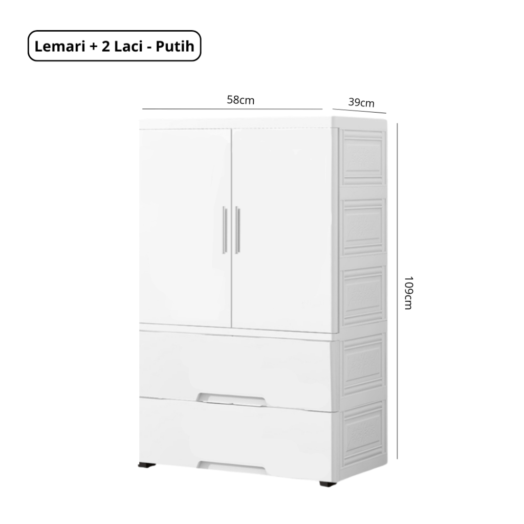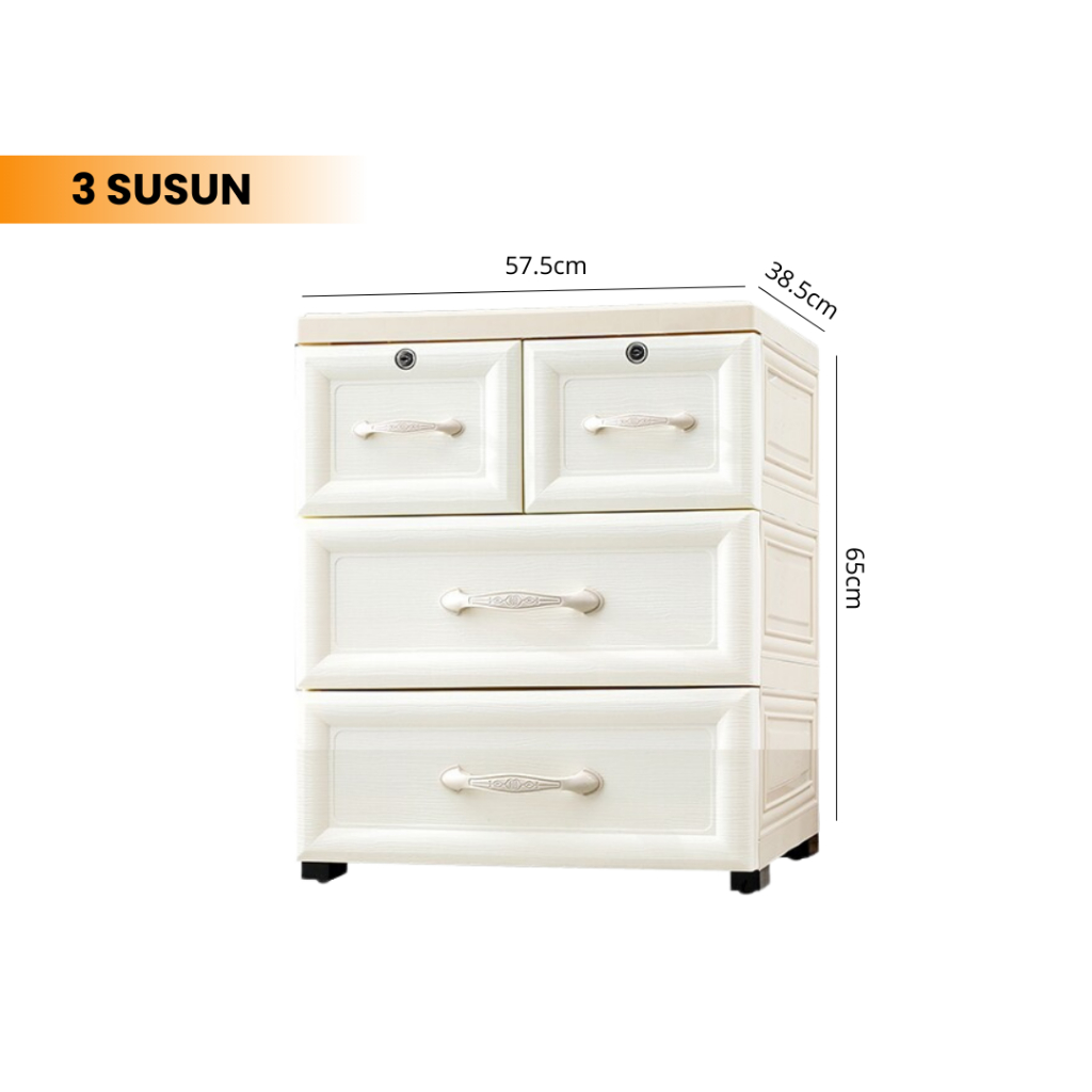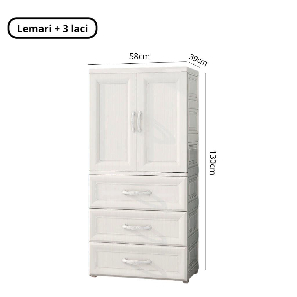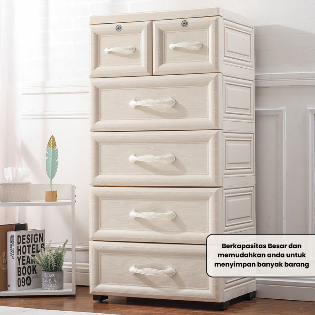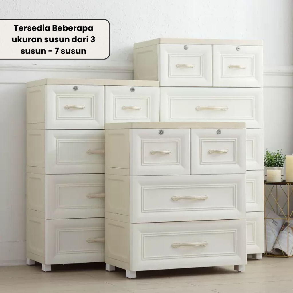 Goodbaby | Lemari Plastik Laci Dengan Handle - Lemari Putih Eropa Motif Ulir - Lemari pakaian plastik premium Lemari Pakaian Anak Lemari Laci