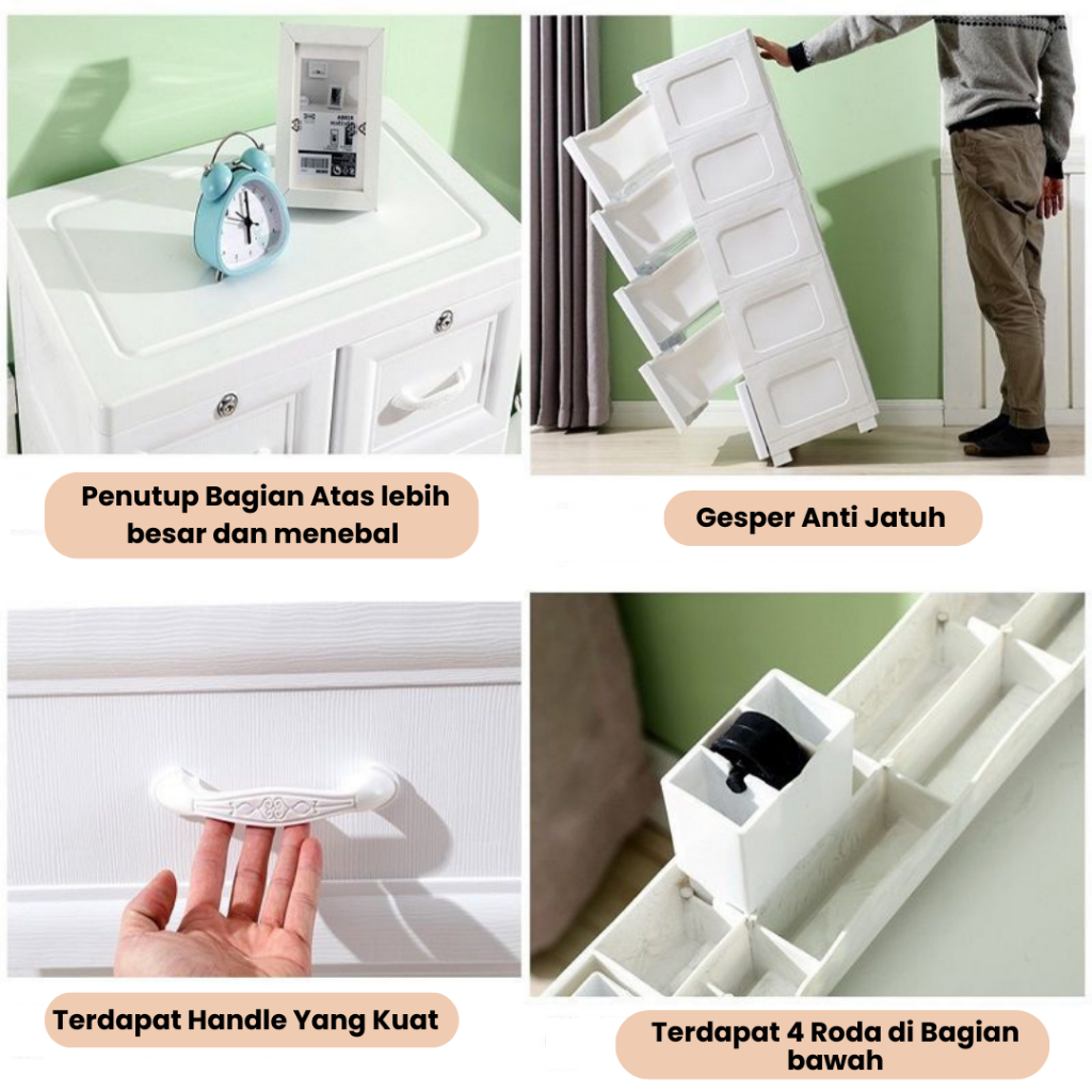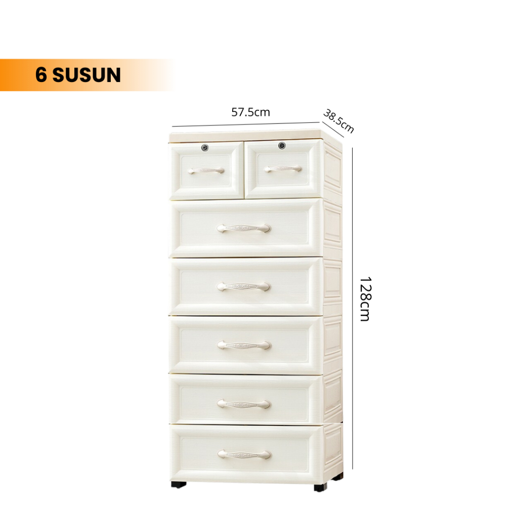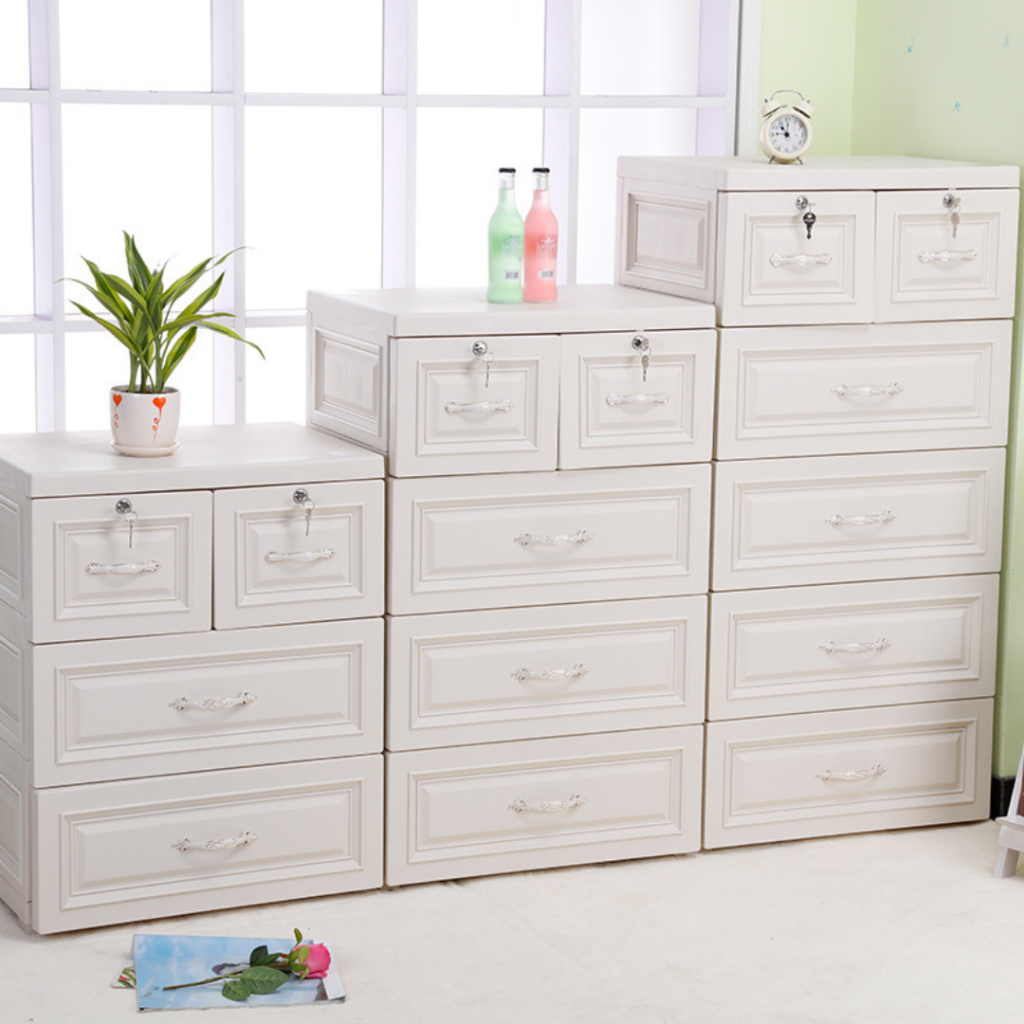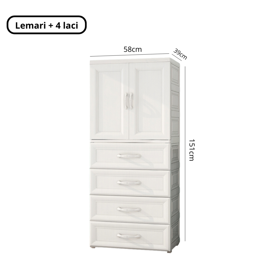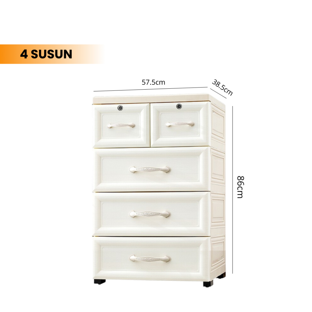 Goodbaby | Lemari Plastik Laci Dengan Handle - Lemari Putih Eropa Motif Ulir - Lemari pakaian plastik premium Lemari Pakaian Anak Lemari Laci