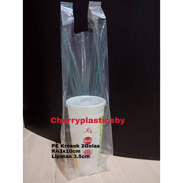 Kresek PE gelas 2 cup bening transparan tebal