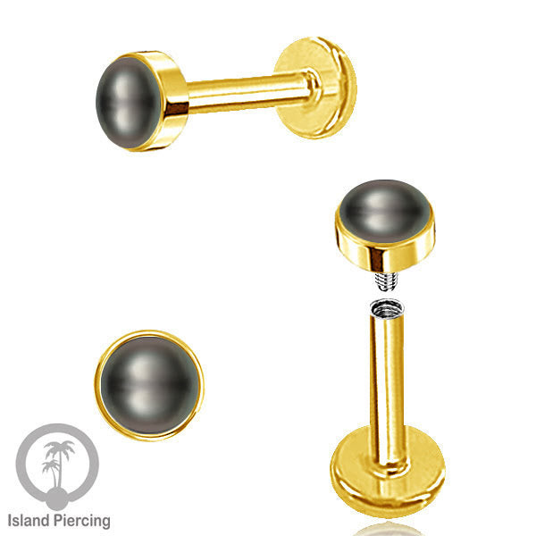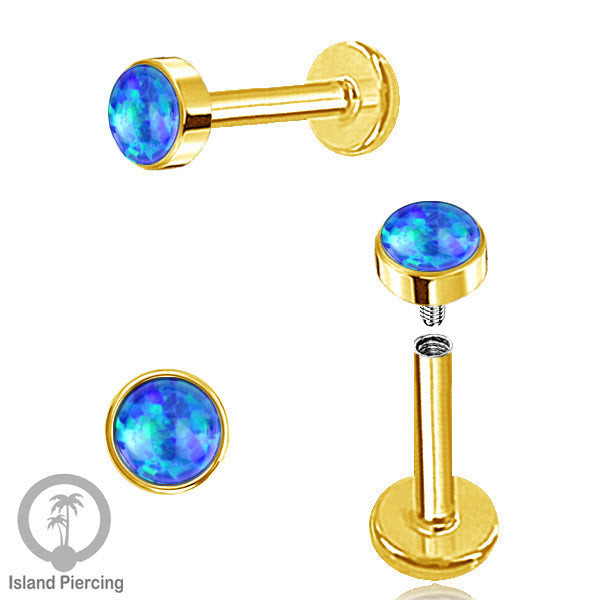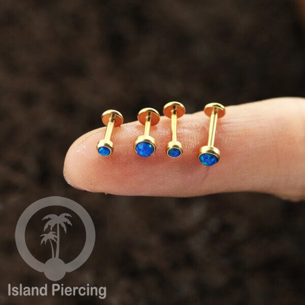 Tindik Anting Labret Piercing Stainless warna Silver dengan Batu Opal biru, Opal putih & Mutiara Hitam
