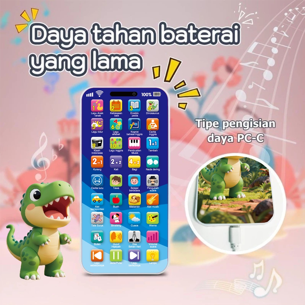 Mainan HP Anak Elektronik Edukatif 36 Fitur Suara Musik Lagu Lampu Ponsel Hijaiyah Muslim Edukasi