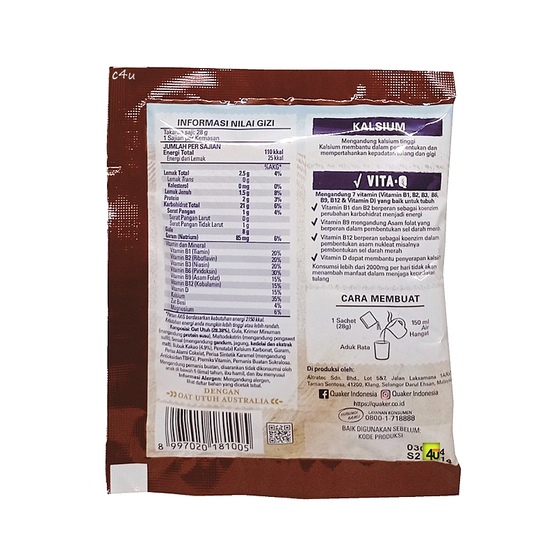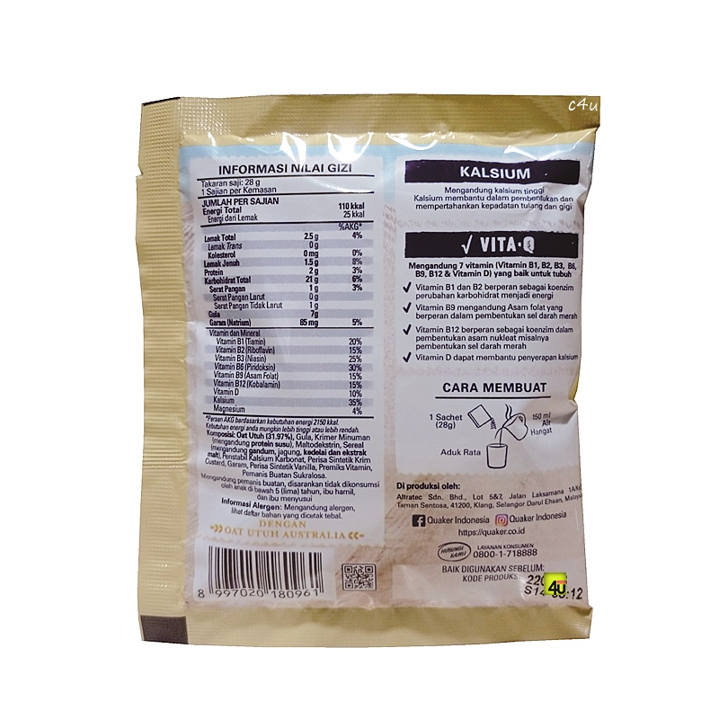 QUAKER 3 IN 1 - Oat Cereal Drink - 1 sachet