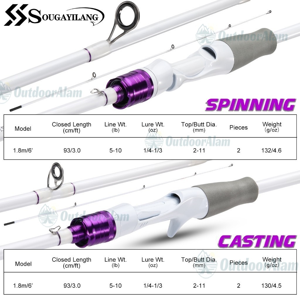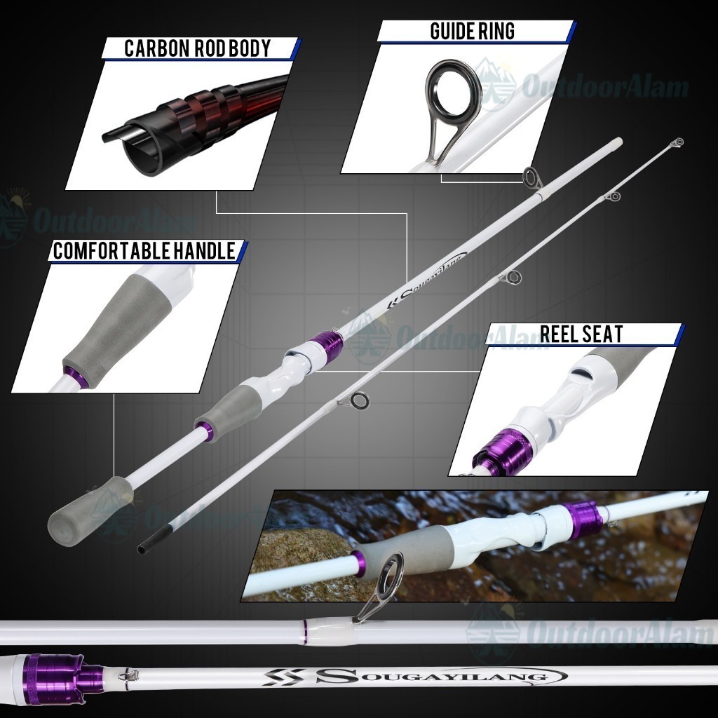 Sougayilang Fishing Rod Carbon Fiber 10LB 2 Sections / Joran pancing perjalanan, 2 bagian 1.8m joran Casting pegangan EVA transisi halus / Joran Pancing 1.8M Spinning/Casting Rod For Freshwater Joran