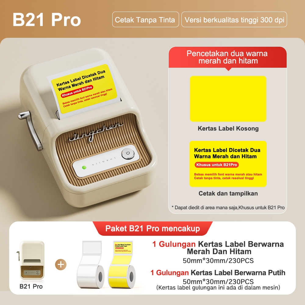 NIIMBOT B21Pro B1 Pencetak Label Termal, Printer Label Portabel Bluetooth Tanpa Tinta dengan