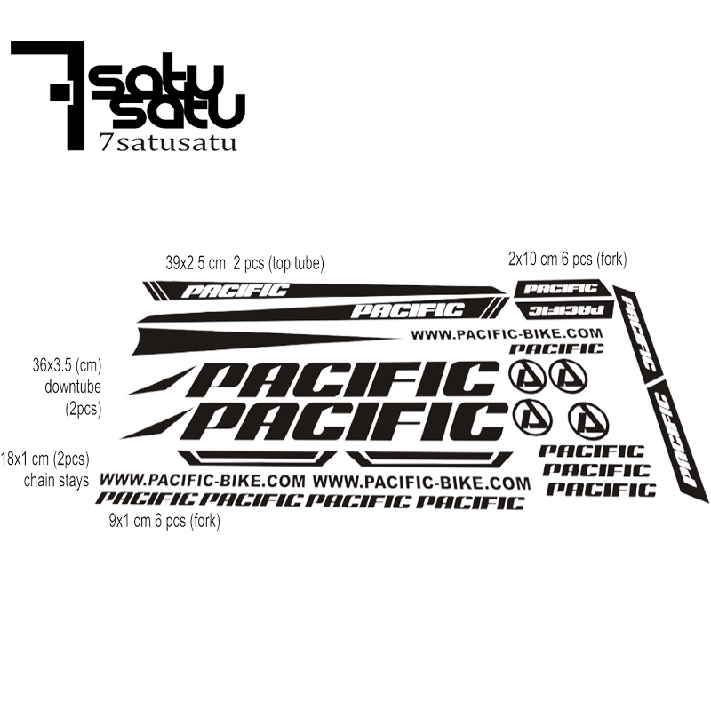 Stiker Sepeda Pacific frame ukuran Universal Rare Cutting Vynil Decal