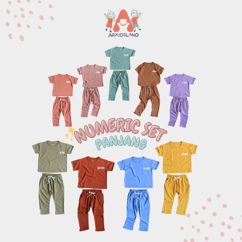 ARKIDSLAND | NUMERIC SET | BAJU SANTAI ANAK SETELAN ANAK UNISEX SETELAN CELANA PANJANG